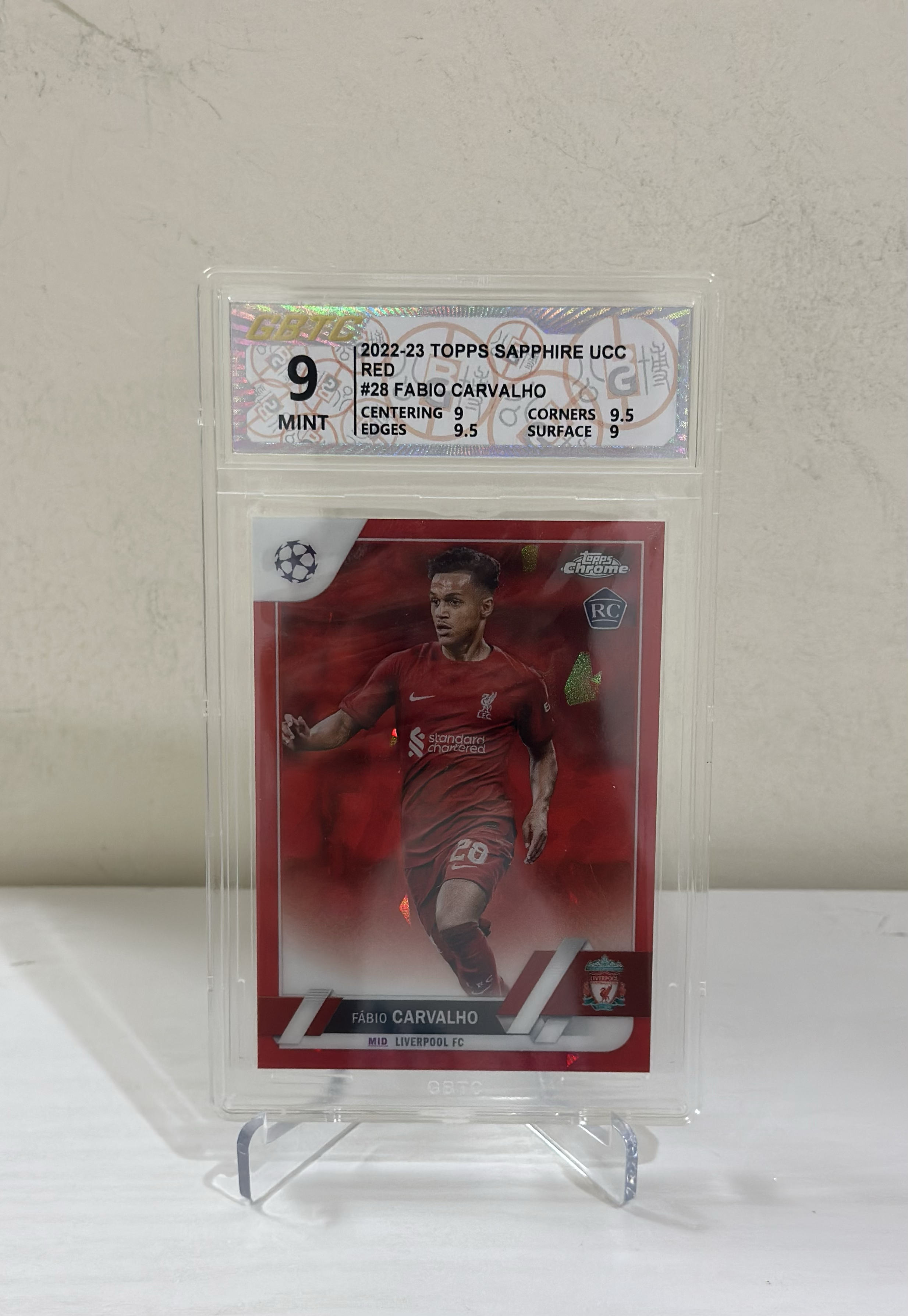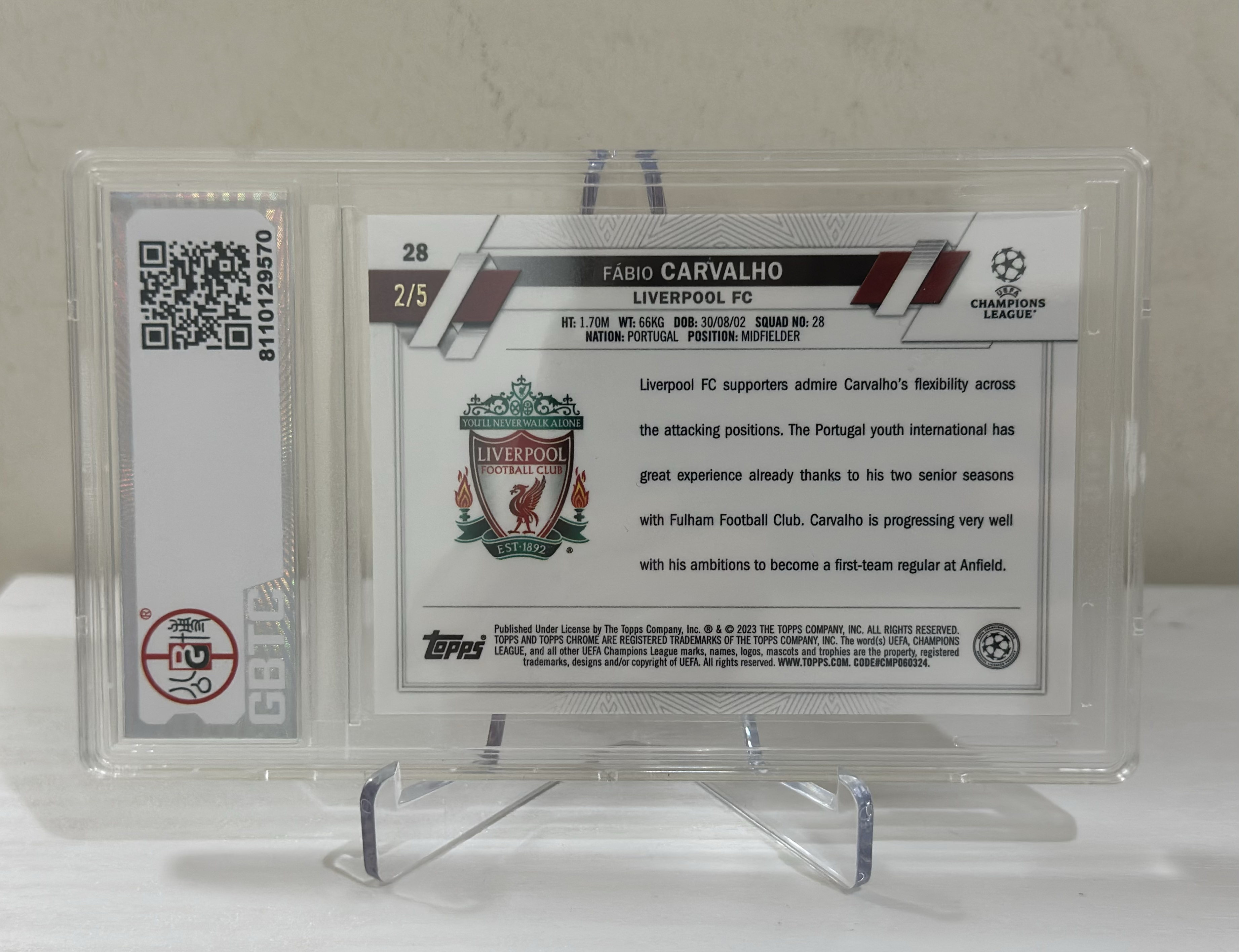 2022-23 Topps Chrome Fabio Carvalho RC 蓝宝石 利物浦 法比奥卡瓦略 新秀 2/5编 红碎冰折 GBTC公博评级9分 葡萄牙 布伦特福德 富勒姆 莱比锡
