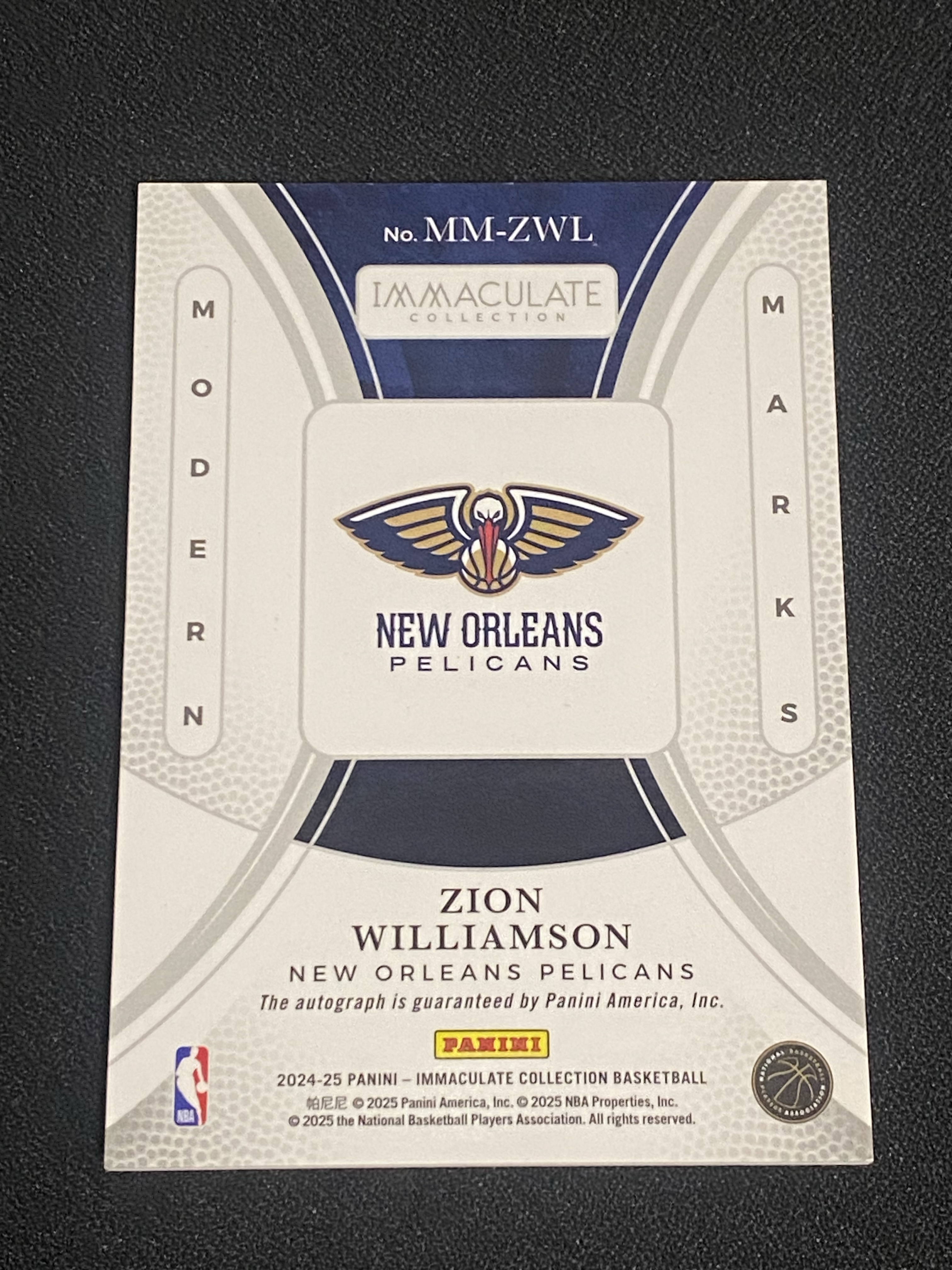 【胡子球手】2024-25 Panini Immaculate Zion Williamson 鹈鹕 锡安 胖虎 05/15编 蓝平行 银笔 卡签 签字 jh