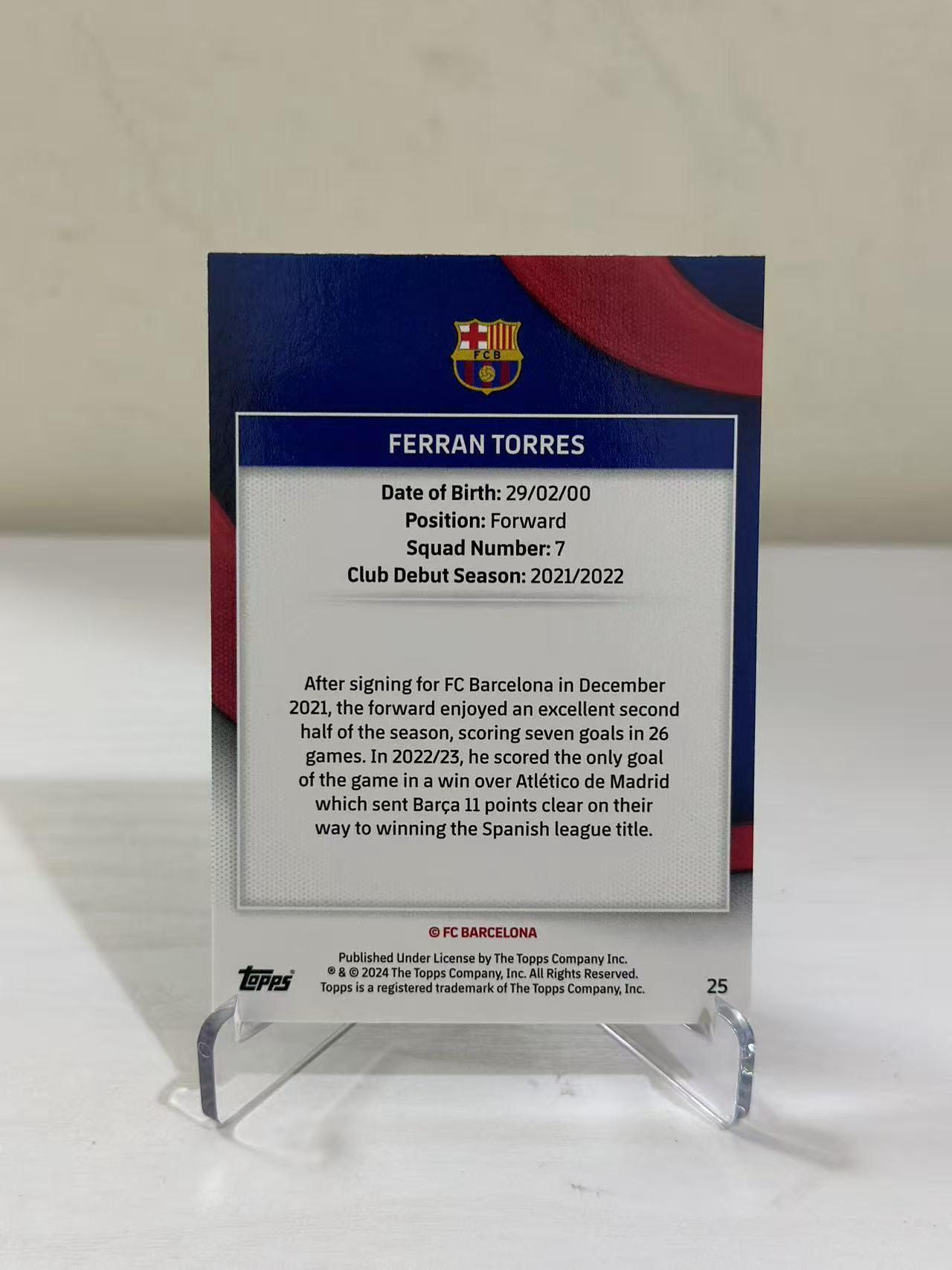 2024 Topps team set Ferran Torres 费兰 托雷斯 巴萨队盒 5/5编 红折 折射 超低编 巴萨 巴塞罗那 西班牙 亚马尔佩德里拉菲尼亚费尔明队友