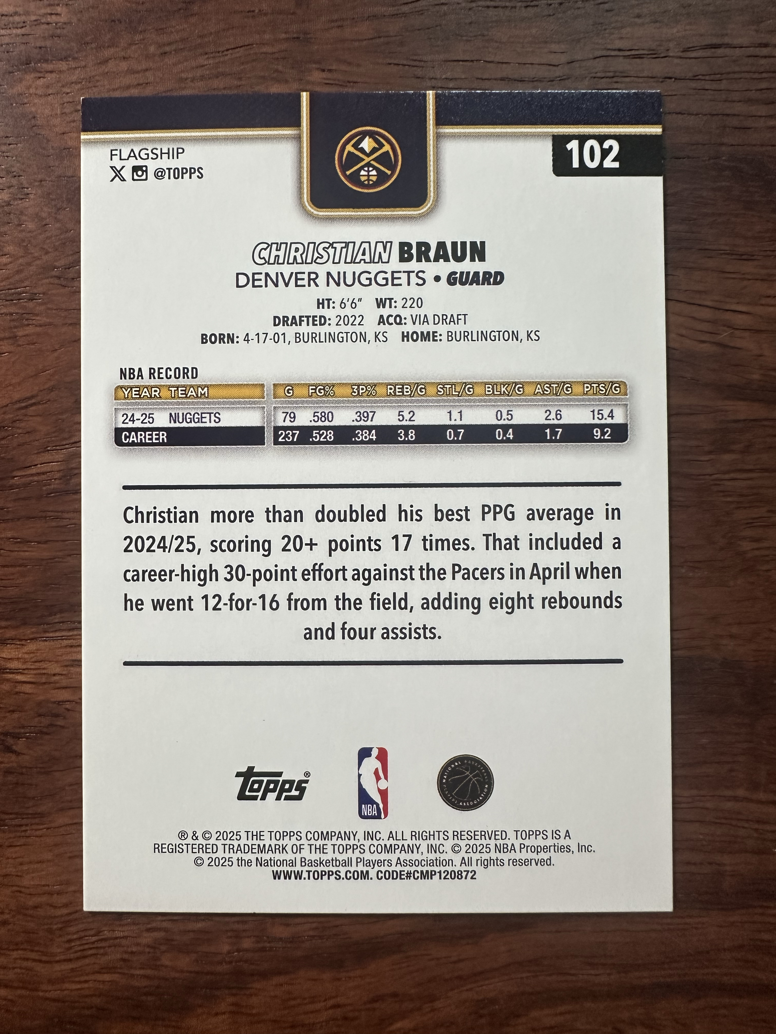 2025 Topps Company Christian Braun Topps元年 掘金 克里斯坦 布劳恩 正金折 金折射 50编 金Base 卡品如图 介意勿拍