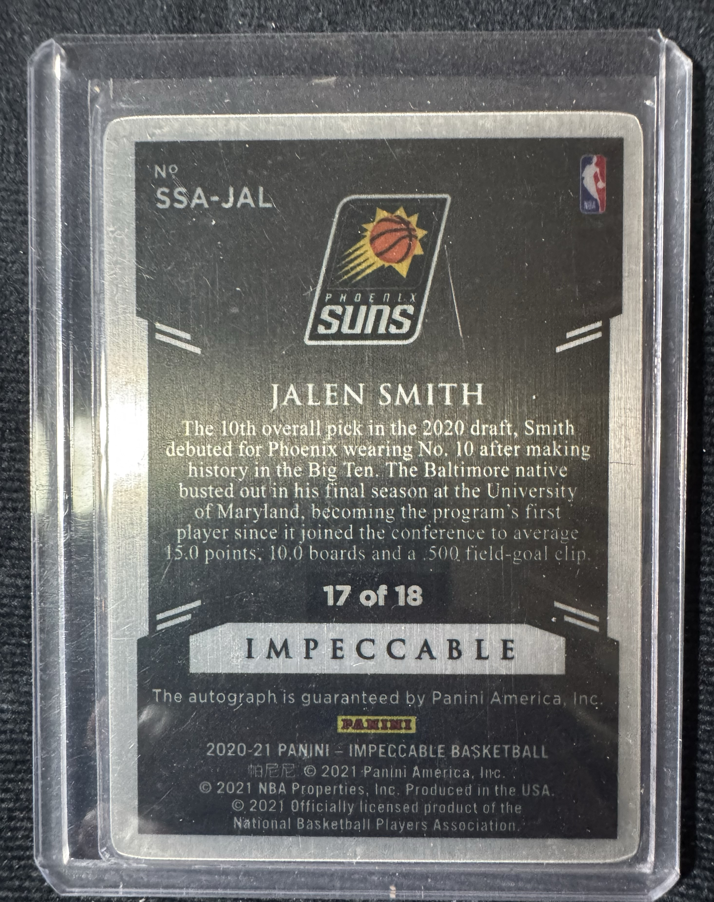 2020-21 Panini Impeccable Jalen Smith RC 小真金 新秀 太阳 杰伦史密斯18编 铁板签 签字