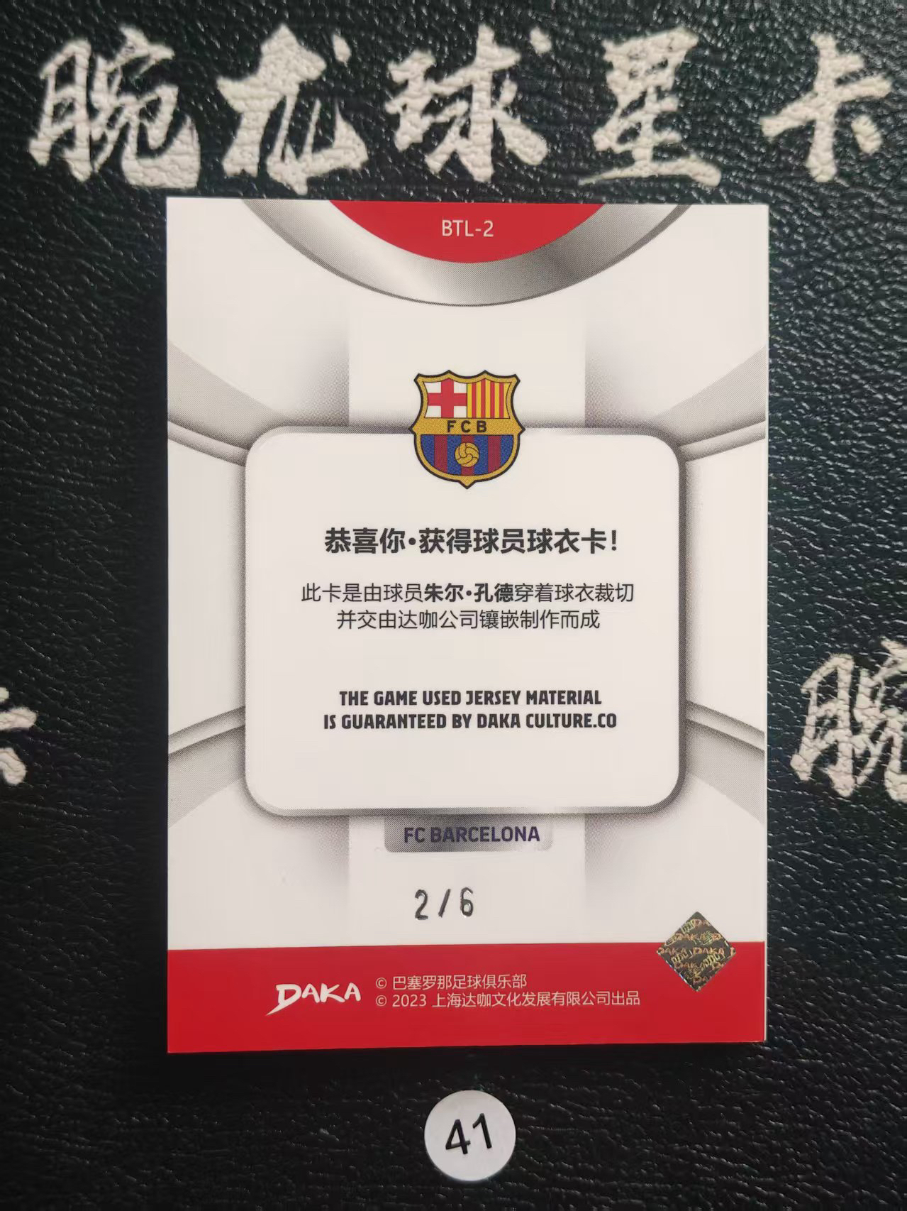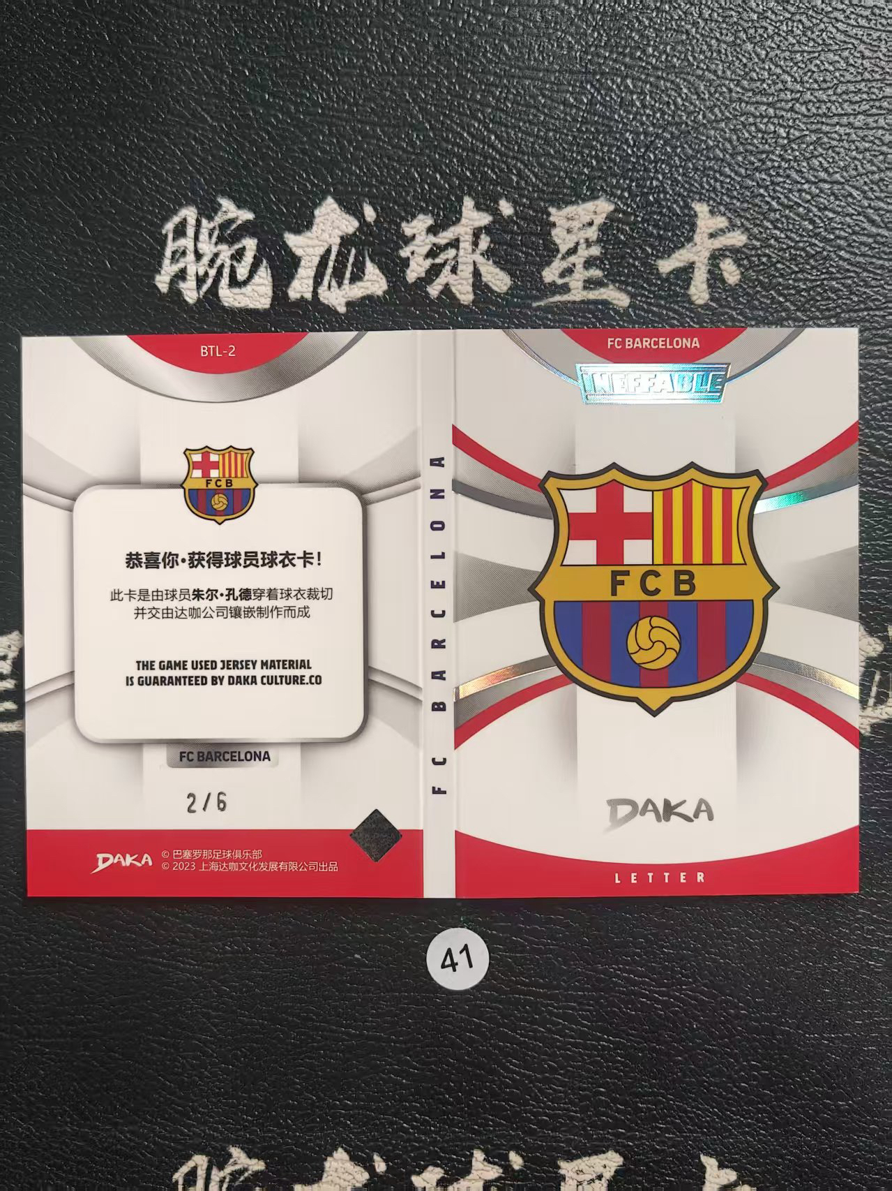 2023 【腕龙拍卖 接代卖】 腕龙心系AM6 DAKA 达卡 巴萨队盒 孔德 球衣切割 物料 球衣卡 字母K 2/6编 低编 JULES KOUNDE 卡品如图 收藏必备