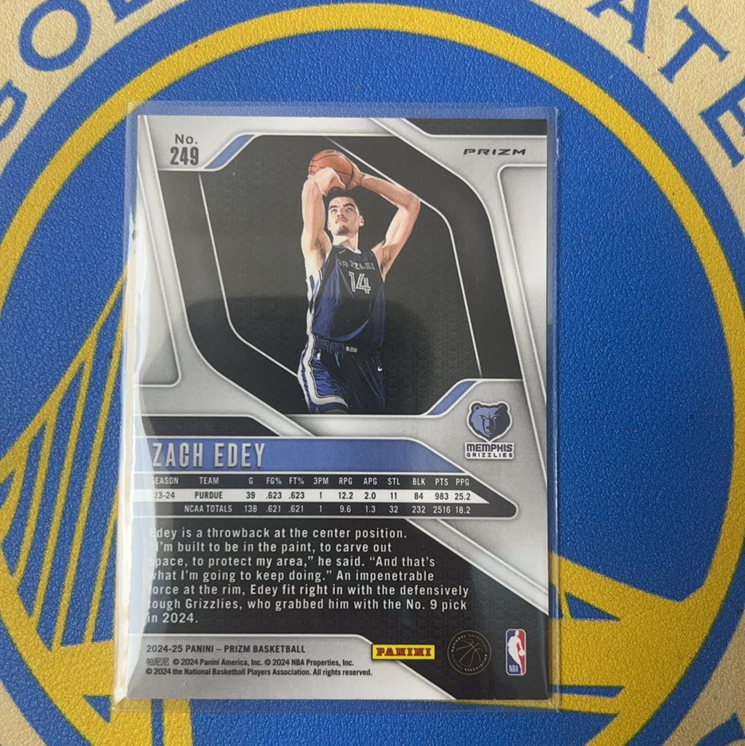 2024-25 Panini Prizm Zach Edey RC 灰熊 超新星 周志豪 扎克 埃迪 新秀年 正银折 卡品如图