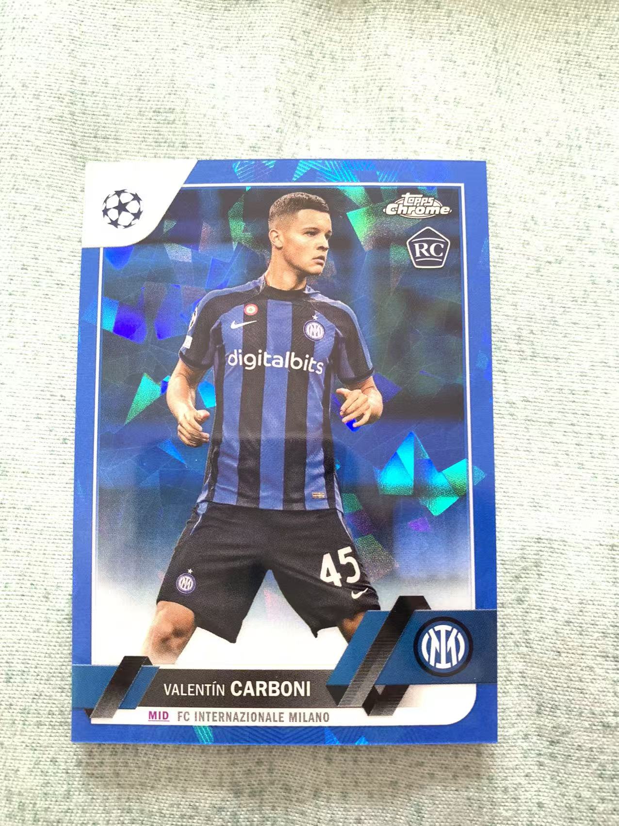 2023 Topps Chrome valentin carboni 卡尔博尼 国际米兰 新秀 RC 蓝宝石 蓝碎冰折 欧冠TC 卡品如图