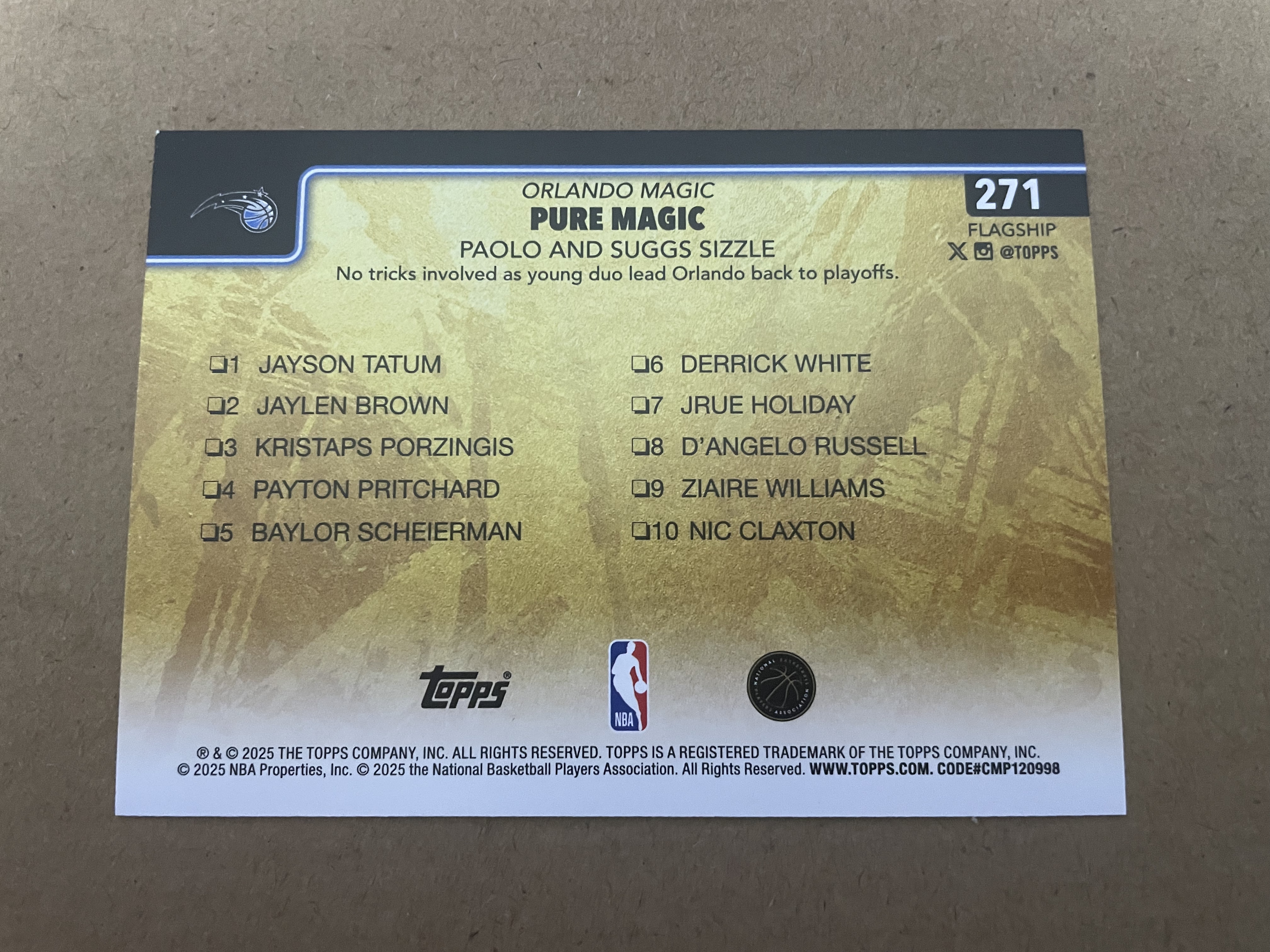 2025 Topps Flagship Paolo Banchero 魔术队 班切罗 班凯罗 萨格斯 金标 金背 超大比例 SSP 变化版 base