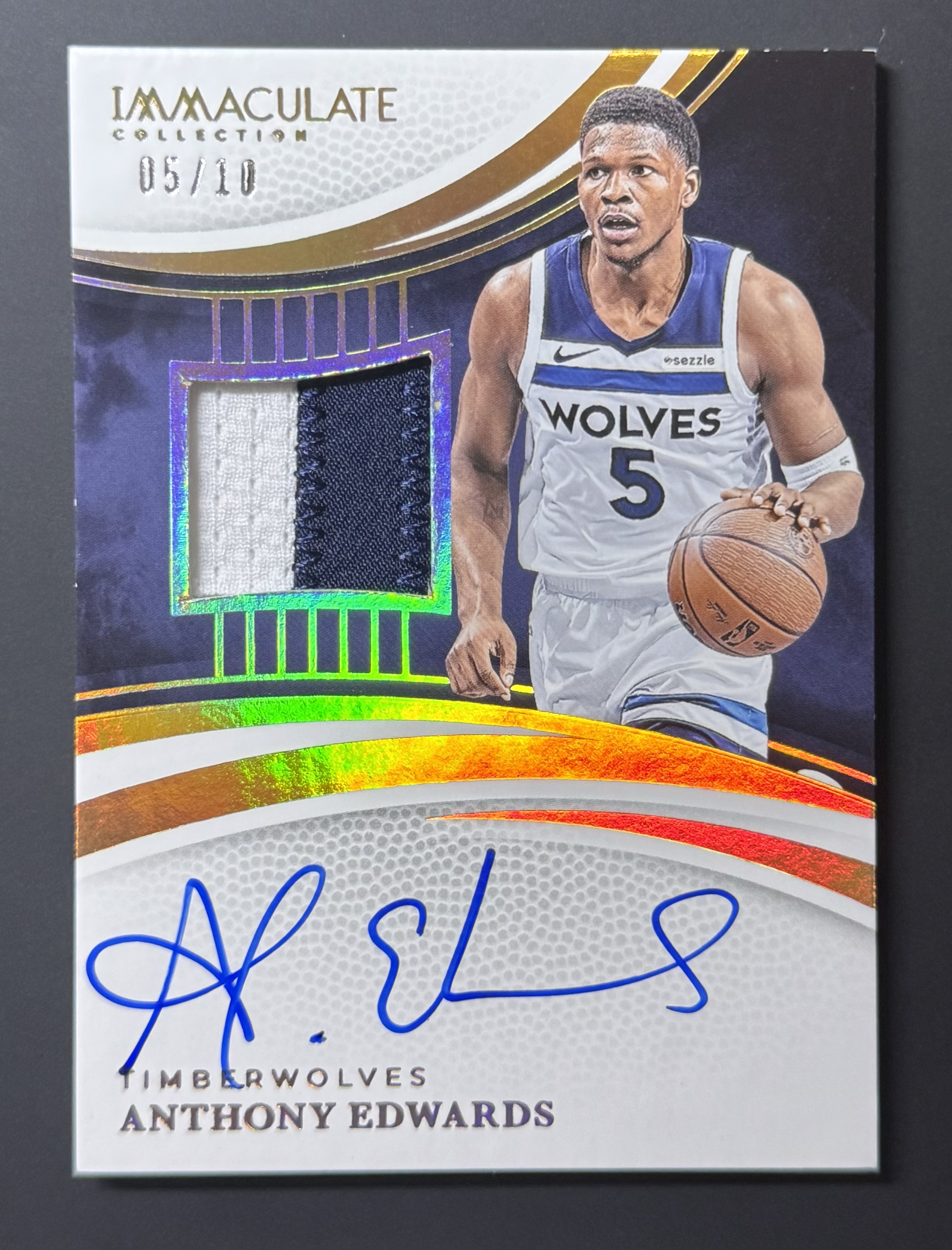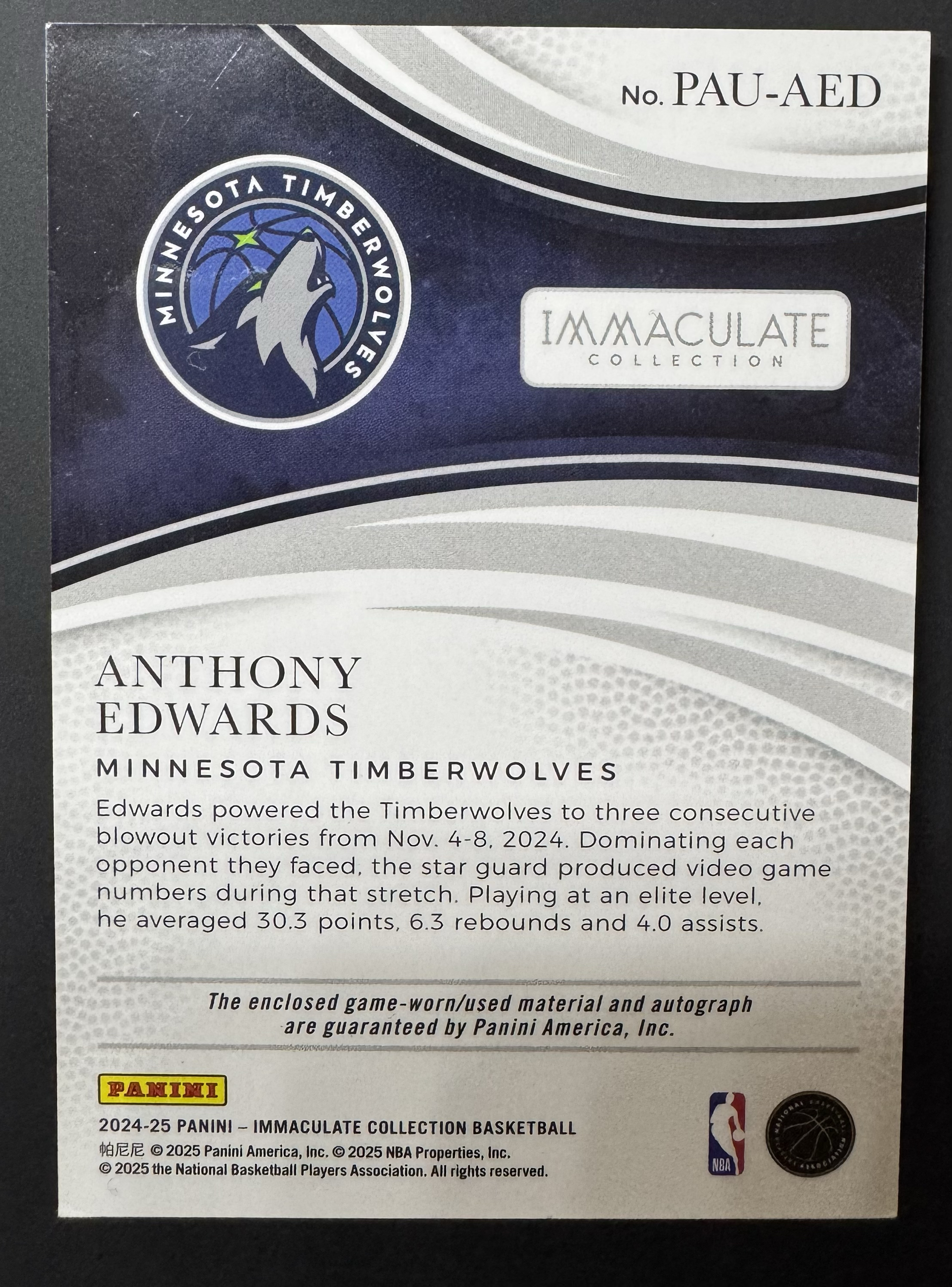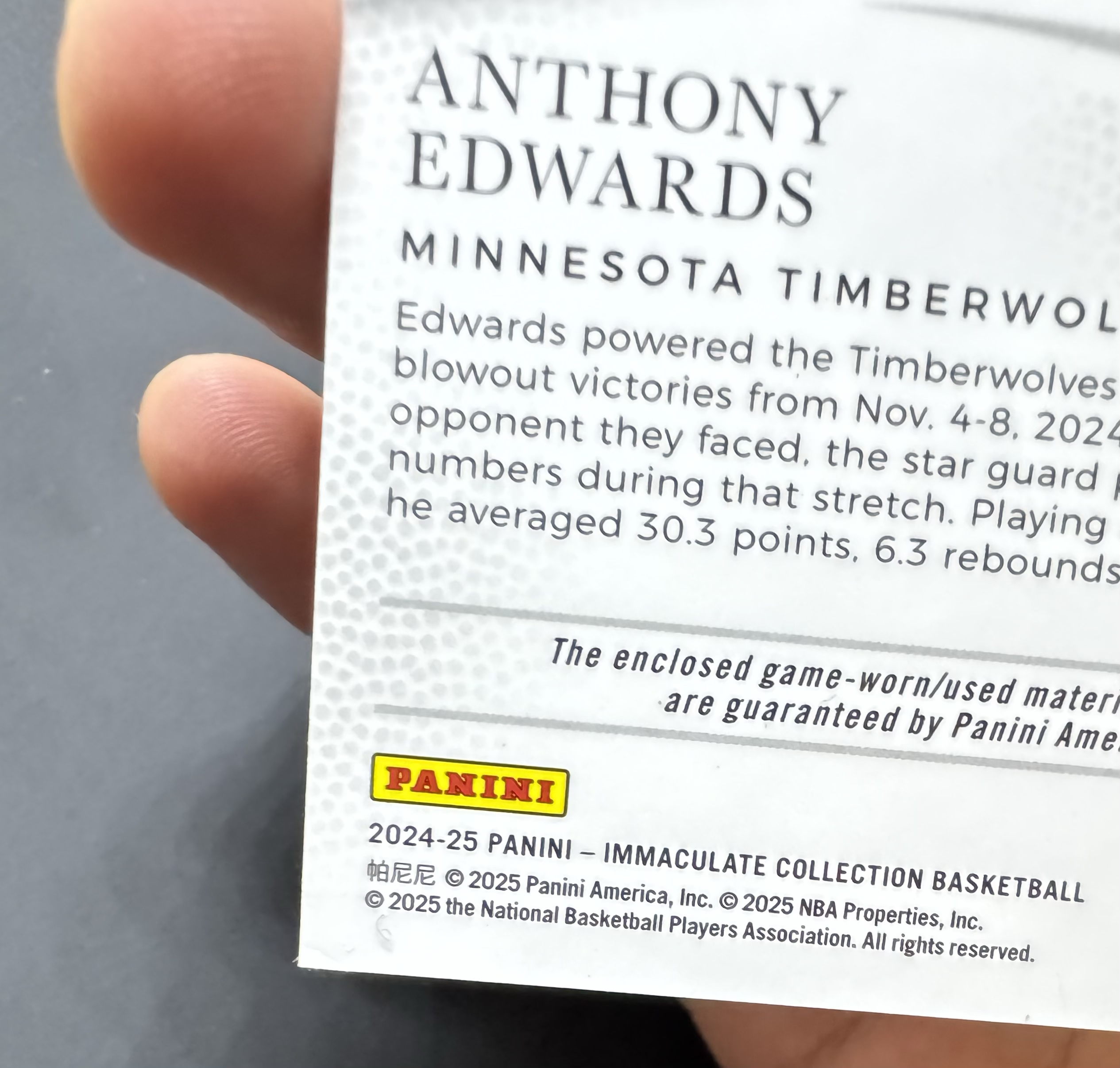 2024-25 Panini Immaculate Anthony Edwards 森林狼 安东尼爱德华兹 华子 patch 签字 卡签 PA 5/10 同背 暴力切割 金色平行 瑕疵见图二 图三