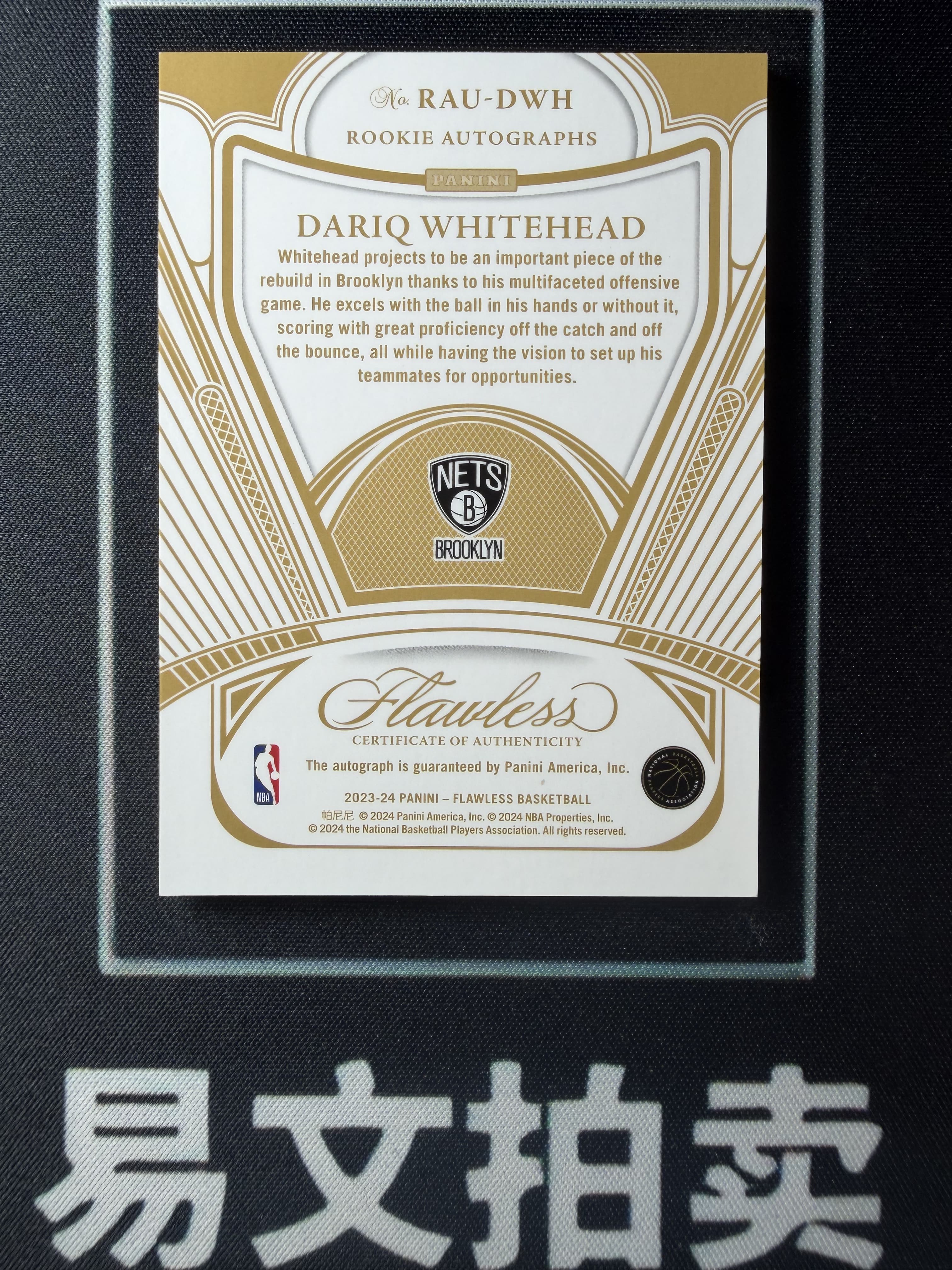 【易文拍卖 超级回款】2023-24 Panini Flawless 手提 DARIQ WHITEHEAD 篮网 达里克 怀特黑德 RC新秀 09/25编 银平行 卡签字签名 #Yung