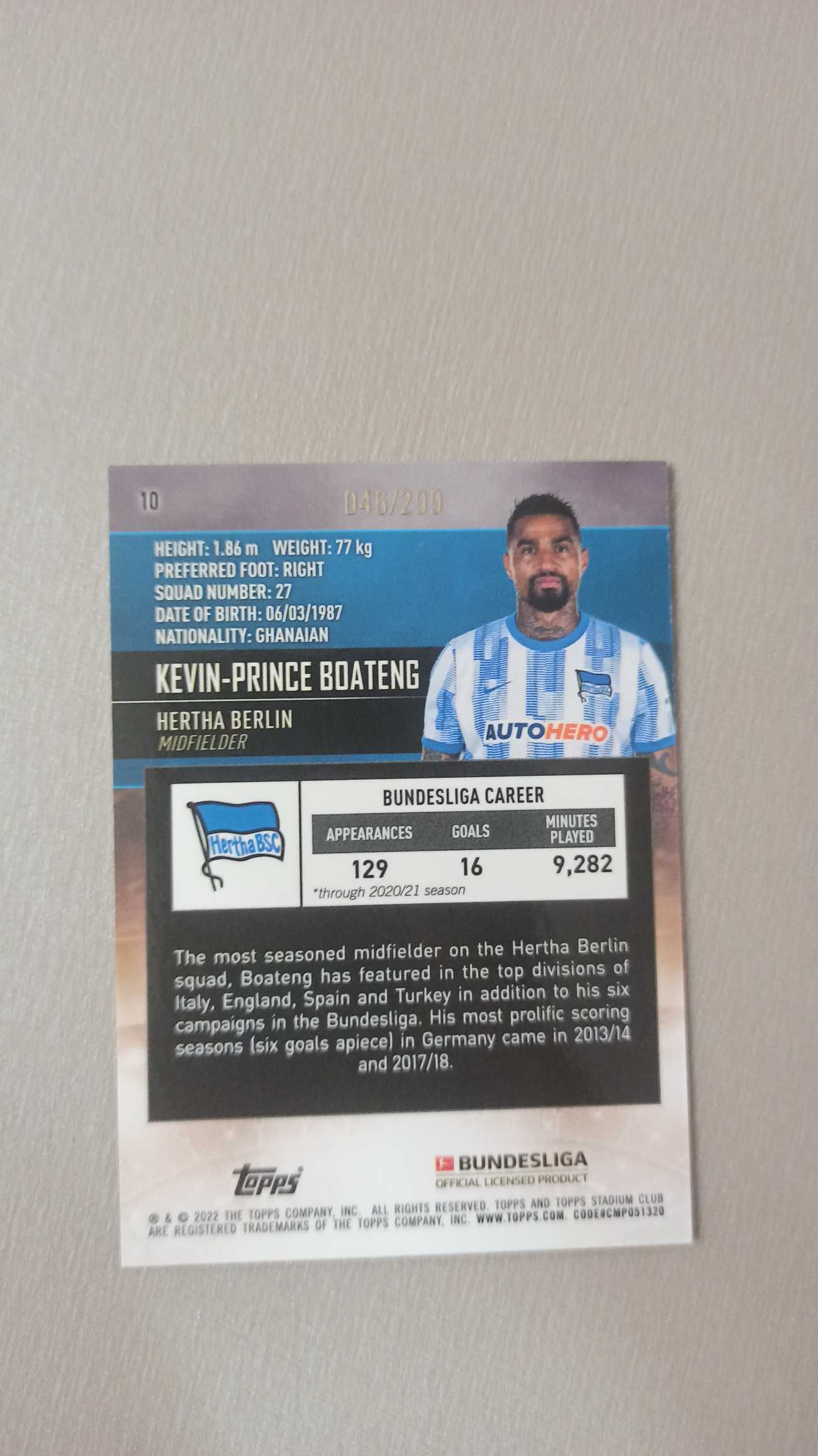 2022 Topps Stadium Club Chrome Kevin Prince Boateng 046/299编 K博阿滕 卡品如图 收藏必备 卡默认都有瑕疵白边 介意勿拍