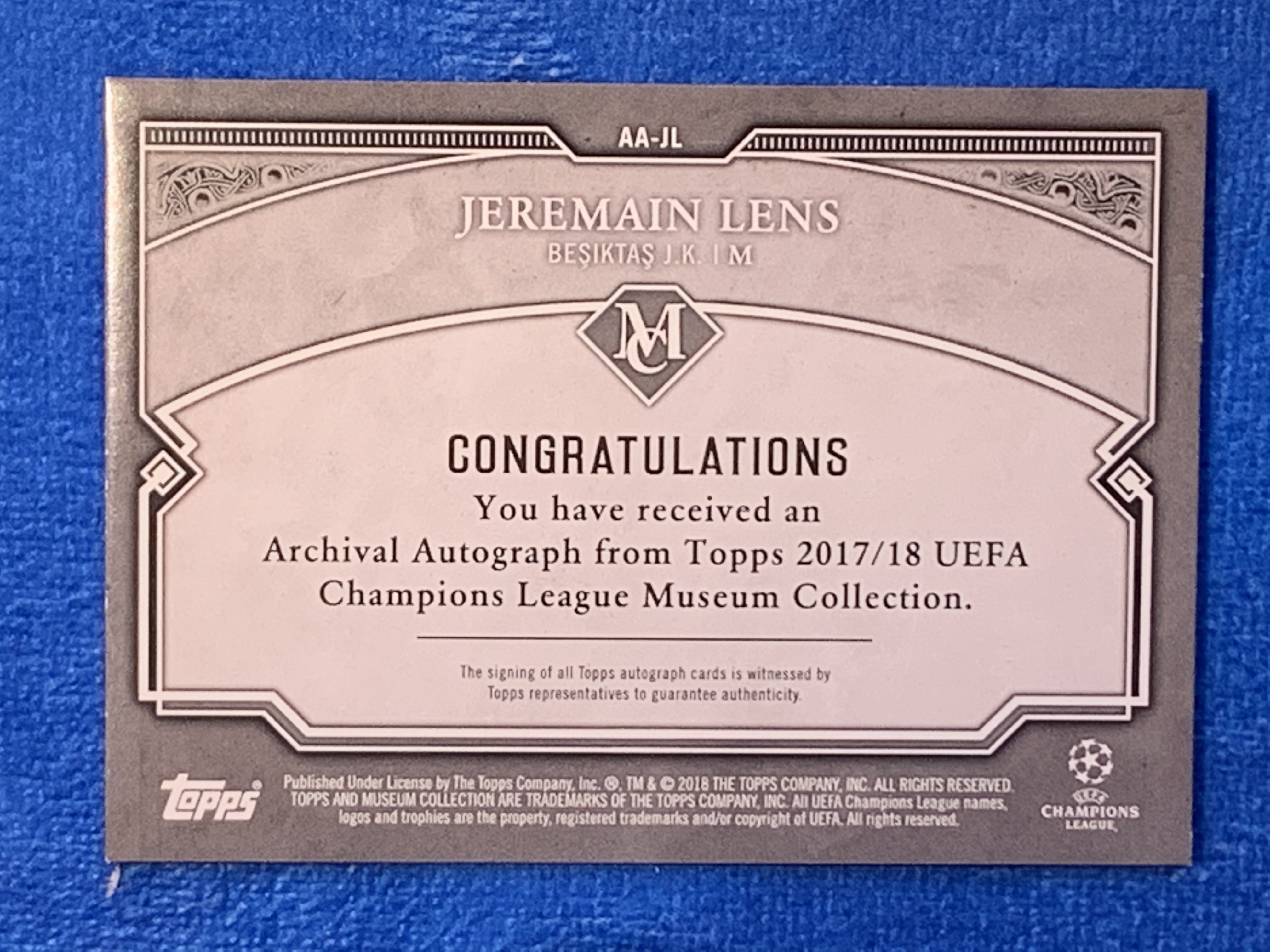 2017-18 Topps Museum Jeremain Lens 欧冠49编签字签名 贝西克塔斯Beşiktaş 伦斯 荷兰Holland 桑德兰Sunderland PSV 不保卡品