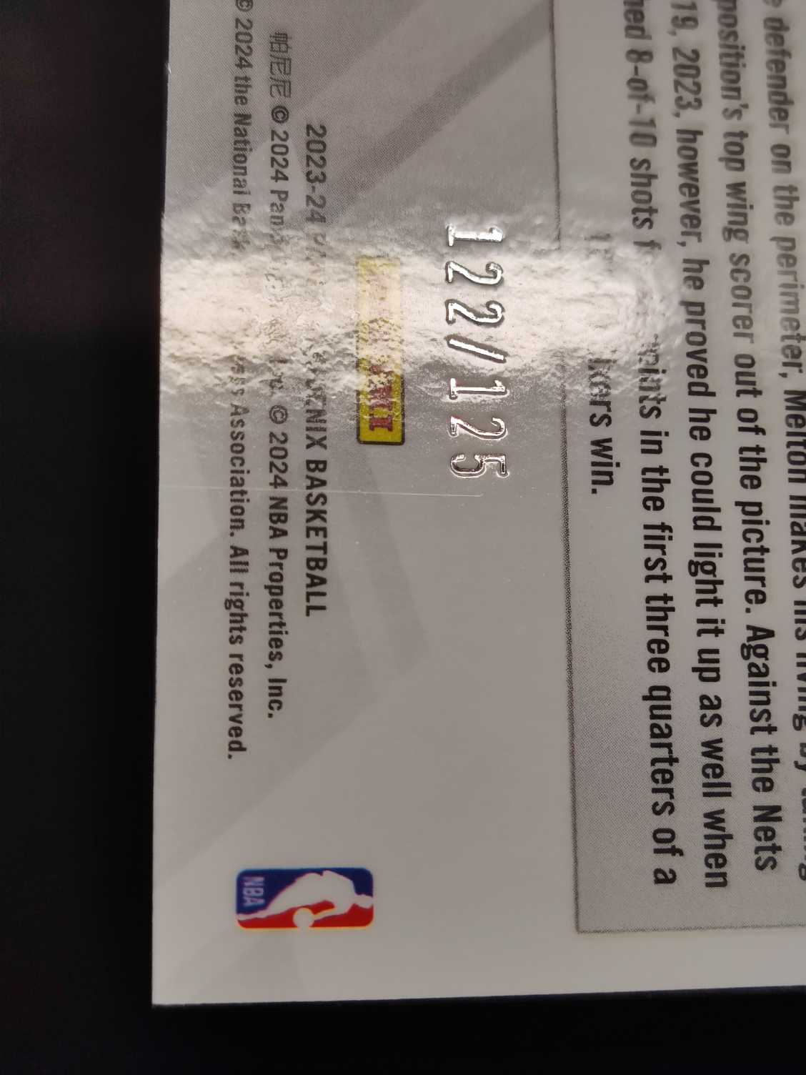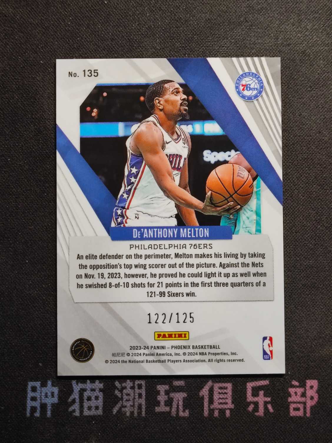 【肿猫球星卡潮玩俱乐部】实体店铺,信誉保障。购买须知:①所有卡的品相为通行品如有重大品相残次问题会在描述中注明。木盒、手提、国宝、IMM、Noir、小真金等等厚卡系列的卡片,有轻微白边白角属于正常品相,折射卡、镜面卡有机械划痕、印刷线属于正常品相,所有卡片不保证后续评级分数。②拍卖卡片不含卡具,自带官方原封砖、原封夹的除外,收到有卡具属于赠送性质,不接受因卡具问题维权,带有原封卡砖、卡夹的卡不保证卡品介意勿拍。③卡片截标后请于3日内通过卡淘线上进行付款,本店保证付款后24小时之内发货,3日内不付款第四日关闭订单,不接受后续协商重开,请免开尊口,本店所有卡片均不支持累计。④签收时请拆封仔细检查卡片品相并录制拆箱视频以便佐证,如果有疑问请于快递签收3日内通过内站内信联系客服,超过3日客服将不予受理。如若遇到快递运输造成卡品损坏与丢失问题,属快递公司的工作失误,本店不予赔偿,但会积极配合买家追诉快递公司的赔偿责任,协助买家将损失降到最低。发货时默认卡淘后台收货人信息,如有其它收货地址,请付款前私信客服提供地址,因地址问题发生纠纷请参考卡淘平台规则。为保证服务质量,本店发货只发顺丰陆运寄付,运费18元,超过首重退运费发顺丰到付,偏远地区(如海南、新疆、西藏、青海、甘肃、内蒙古、云南、广西、宁夏、江西、贵州、港澳台地区)顺丰到付。本店卡淘客服工作时间为:每周一~周五 9:00-17:00,按国家法定节假日公休,由于卡淘工作量巨大,如有怠慢请谅解。更多了解,欢迎加入官方QQ群(天津肿猫球星卡:637855320),店内微信客服(肿猫客服:13001360442)