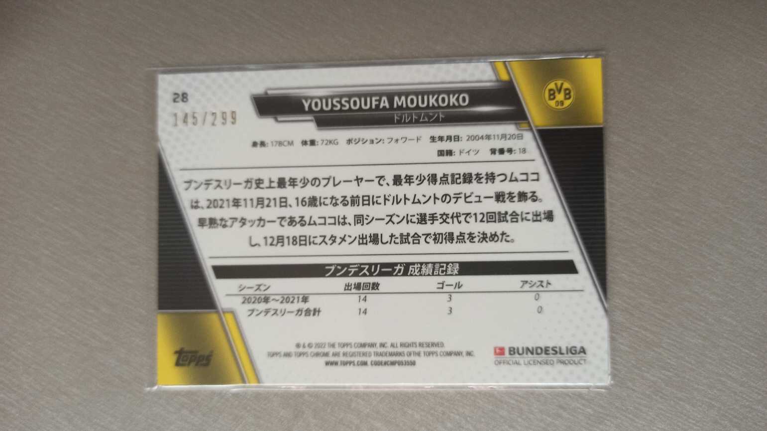 2022 Topps Chrome Bundesliga Japan Youssoufa Moukoko 145/299编 穆科科 卡品如图 收藏必备 卡默认都有瑕疵白边 介意勿拍