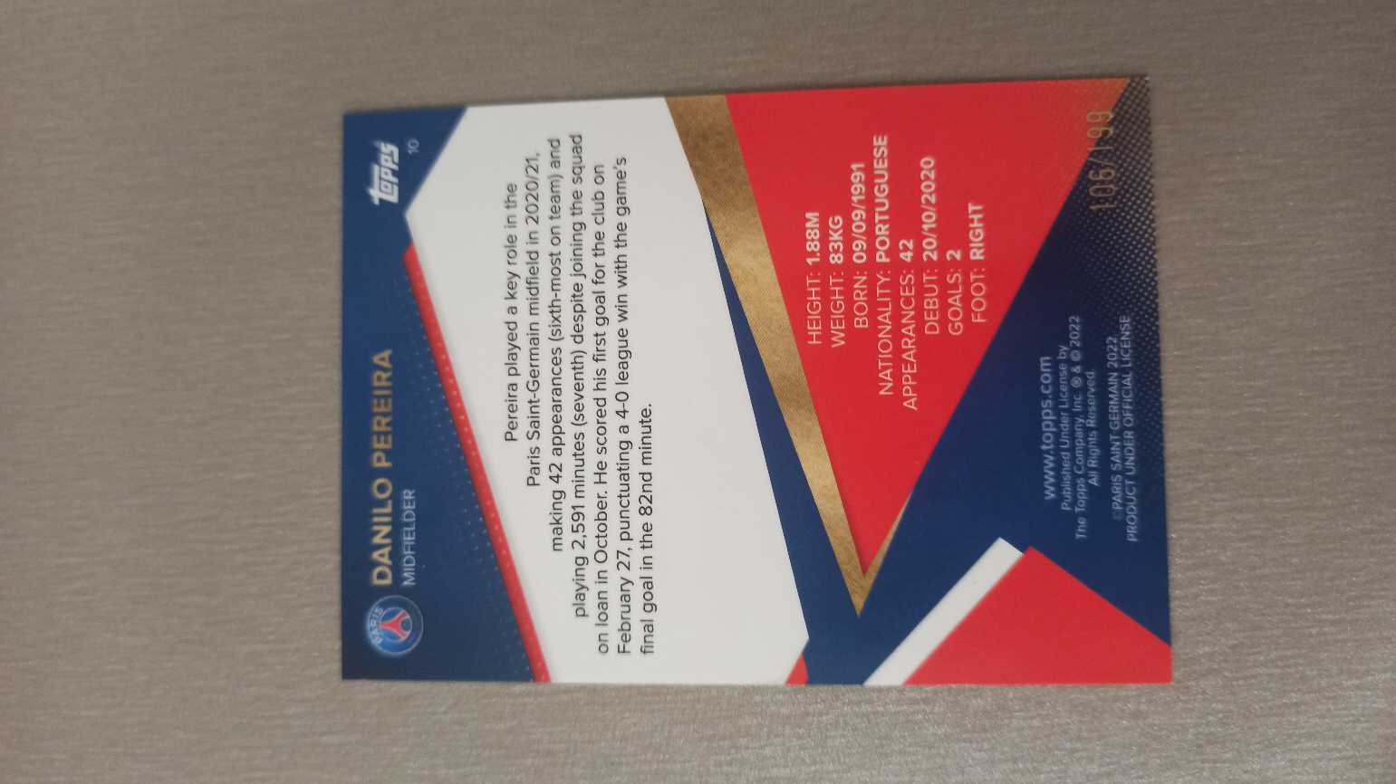 2022 Topps PSG Danilo Pereira da Silva 106/199编 达尼洛 有褶痕 卡品如图 收藏必备 卡默认都有瑕疵白边 介意勿拍