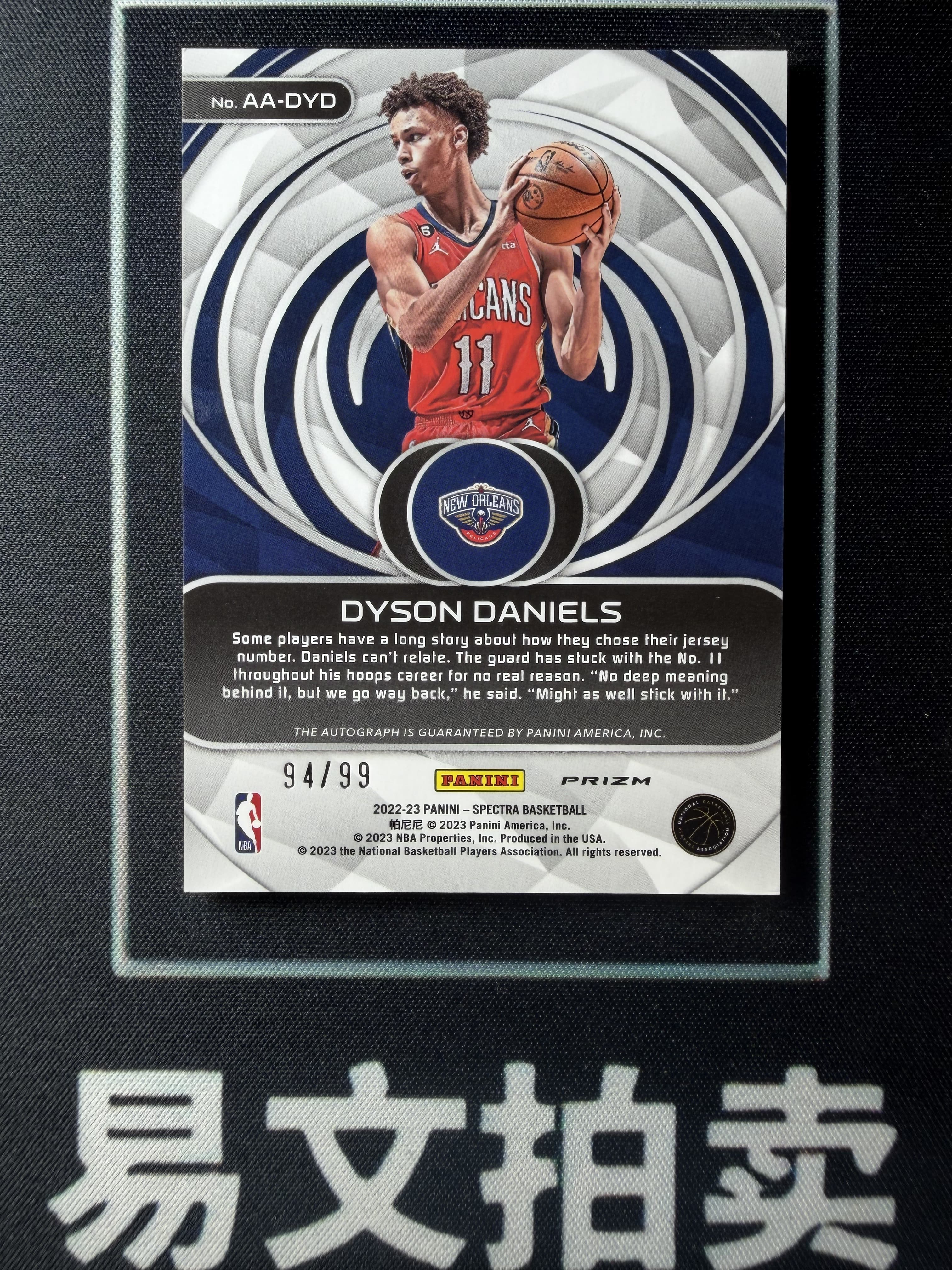 【易文拍卖 超级回款】2022-23 Panini Spectra 光谱 DYSON DANIELS 鹈鹕 丹尼尔斯 RC新秀 94/99编 签字签名 #Yung