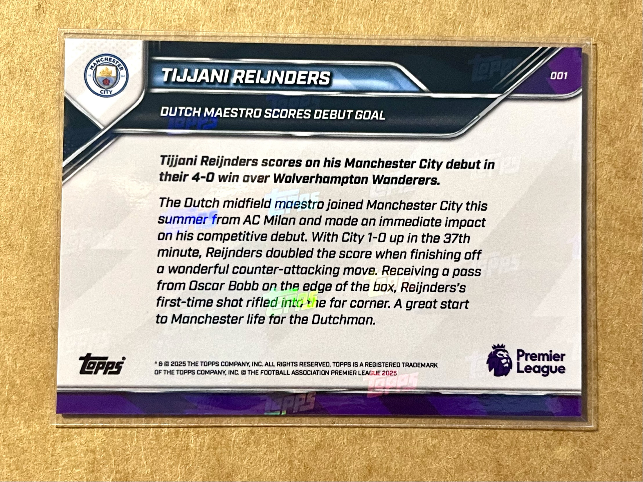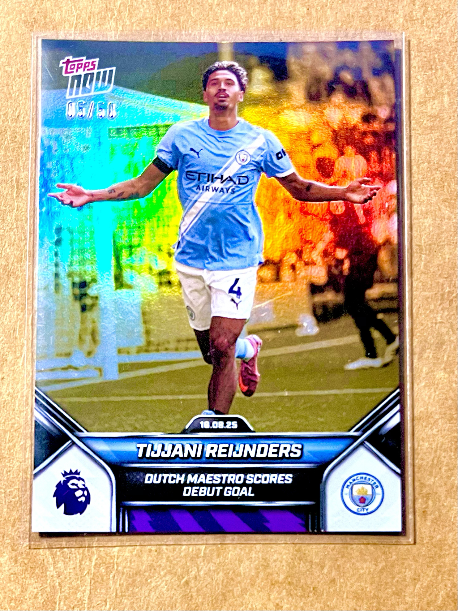 2025 Topps 【蓝矿】 Tijjani Reijnders 赖因德斯 Topps now系列 金折5/50编 英超 曼城 从意甲转战英超的首秀进球!