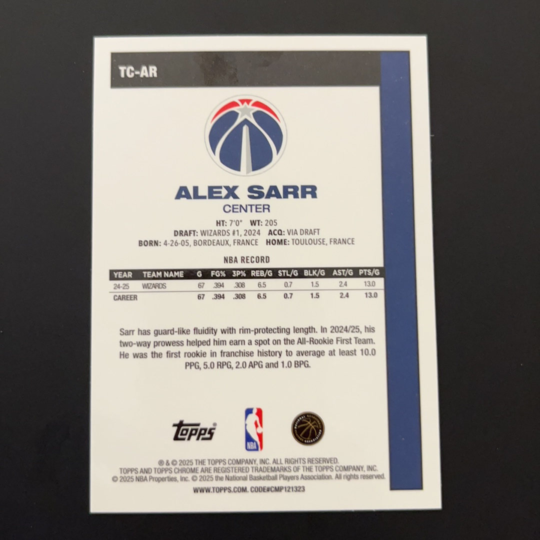 2025 Topps Flagship Alex Sarr Topps 奇才队 亚历克斯 萨尔 45周年绿折 迷宫折 77/199编 卡品如图 肆