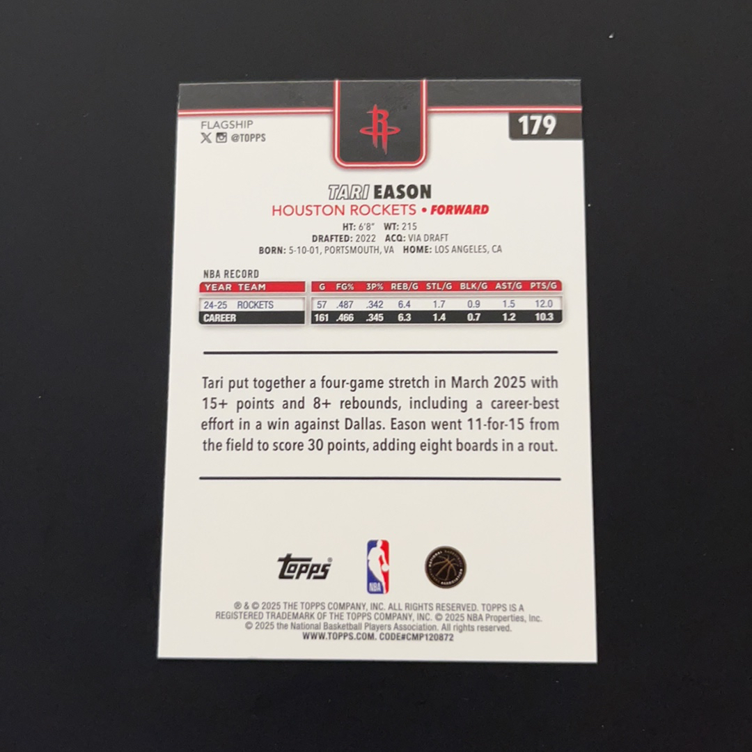 2025 Topps Flagship Tari Eason Topps 火箭队 塔里伊森 紫折133/250编 卡品如图 肆