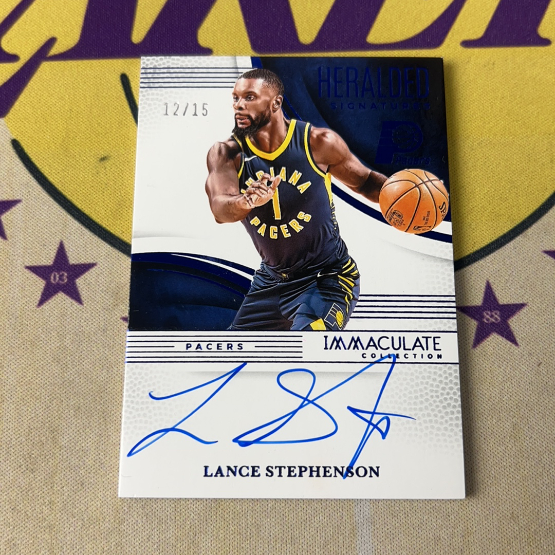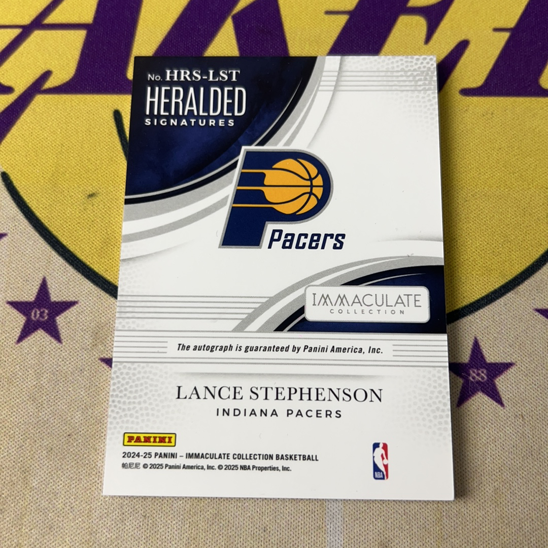 2024-25 Panini Immaculate Lance Stephenson 步行者 名宿 兰斯 史蒂芬森 12/15编 签字 卡签 詹姆斯敌对 卡品如图 黄总