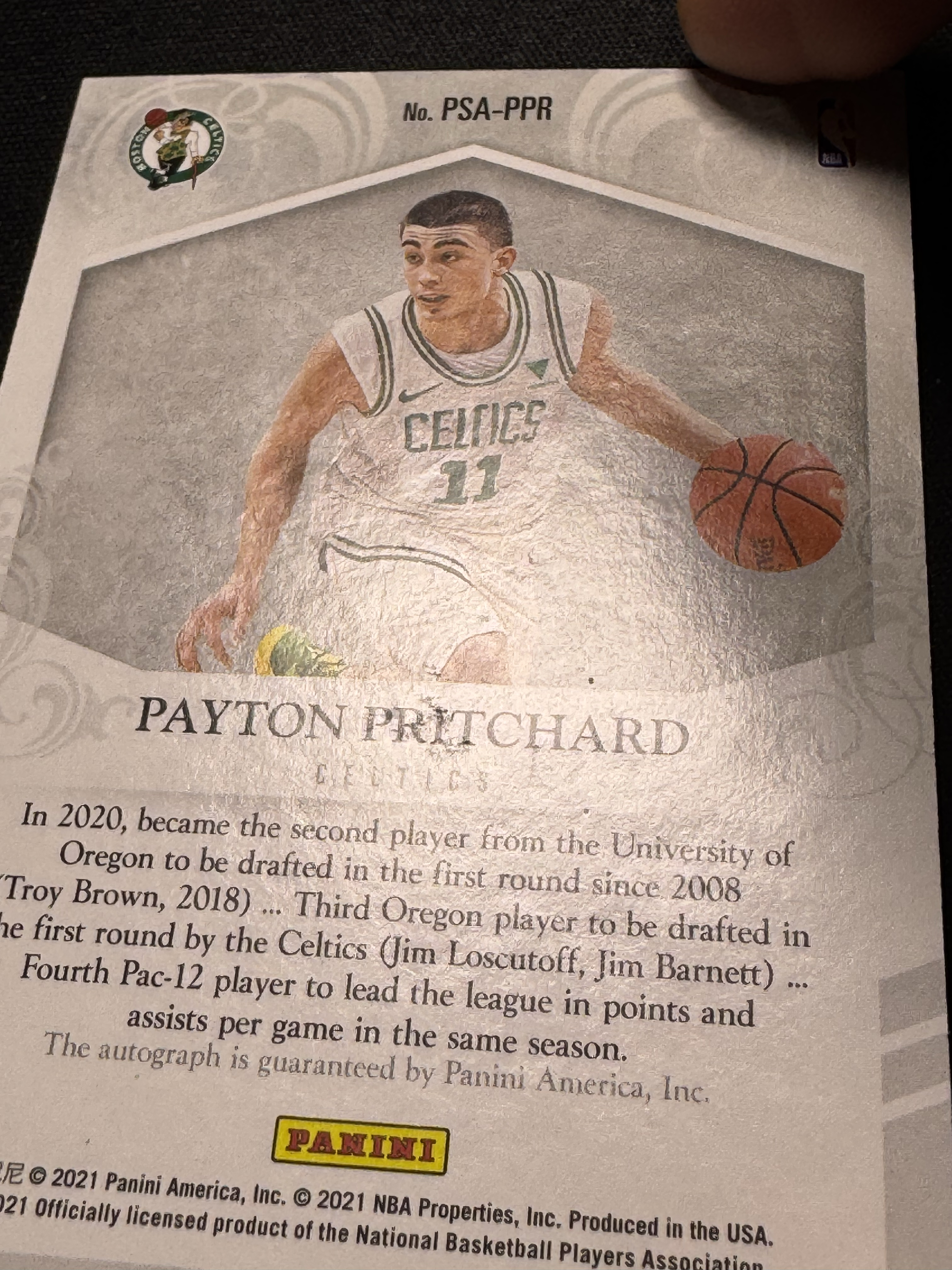 【大师兄拍卖】2021 Panini PAYTON PRITCHARD RC 凯尔特人 普理查德 新秀 签字 卡签 插入签 瑕疵如图 -平贺-