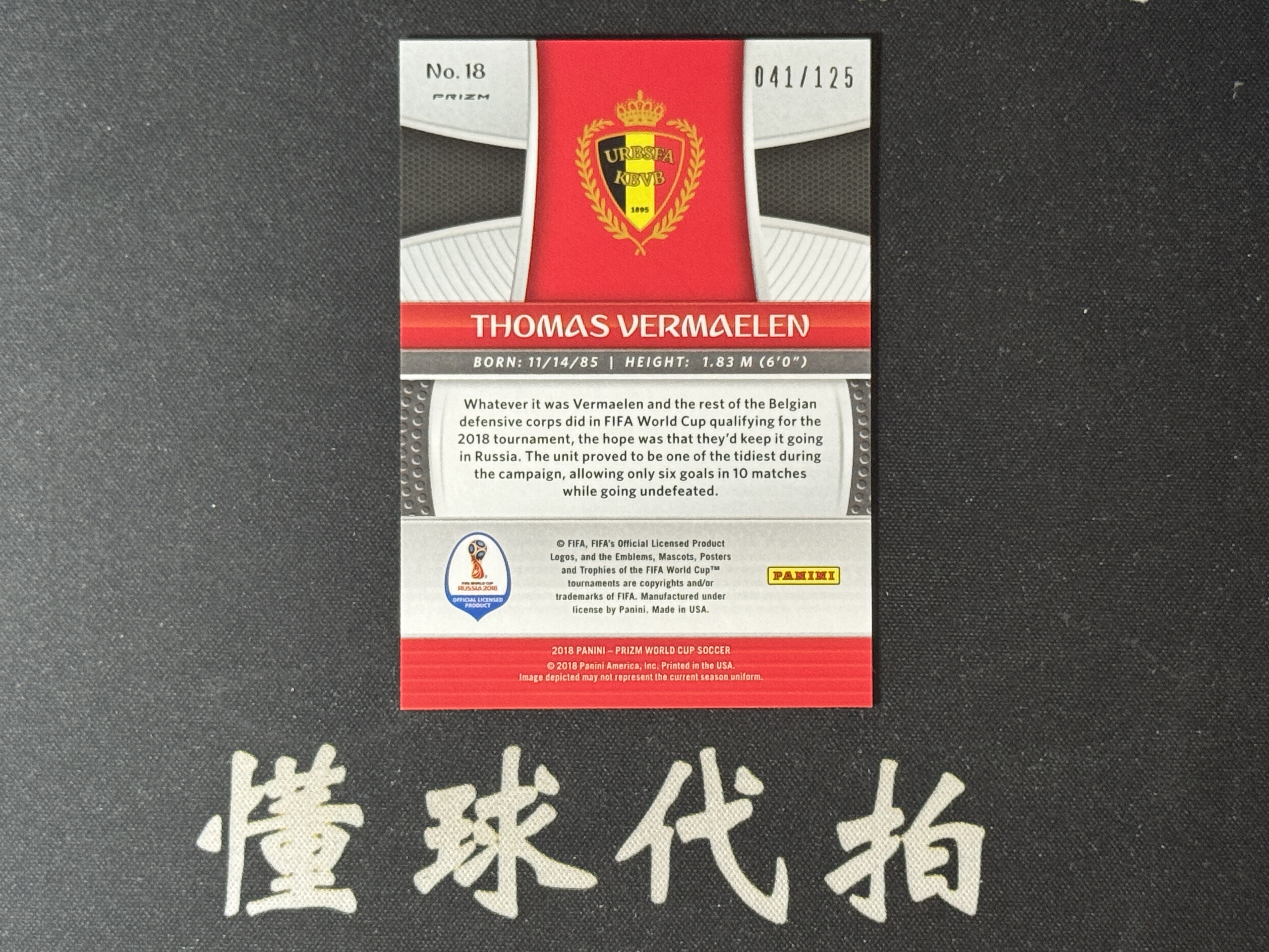 【懂球代拍】2018 panini 世界杯prizm 限量 125编 THOMAS VERMAELEN维尔马伦 比利时🇧🇪 阿森纳 巴萨 蓝镭射折射 值得收藏 DQ077D 005
