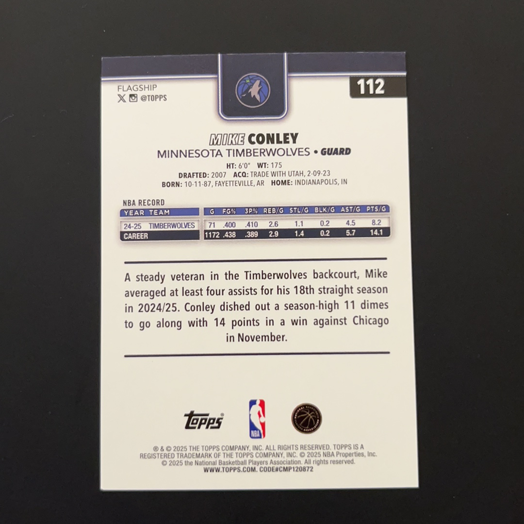 2025 Topps Flagship Mike Conley Topps 森林狼队 迈克康利 橙折 低编 5/25编 卡品如图 肆