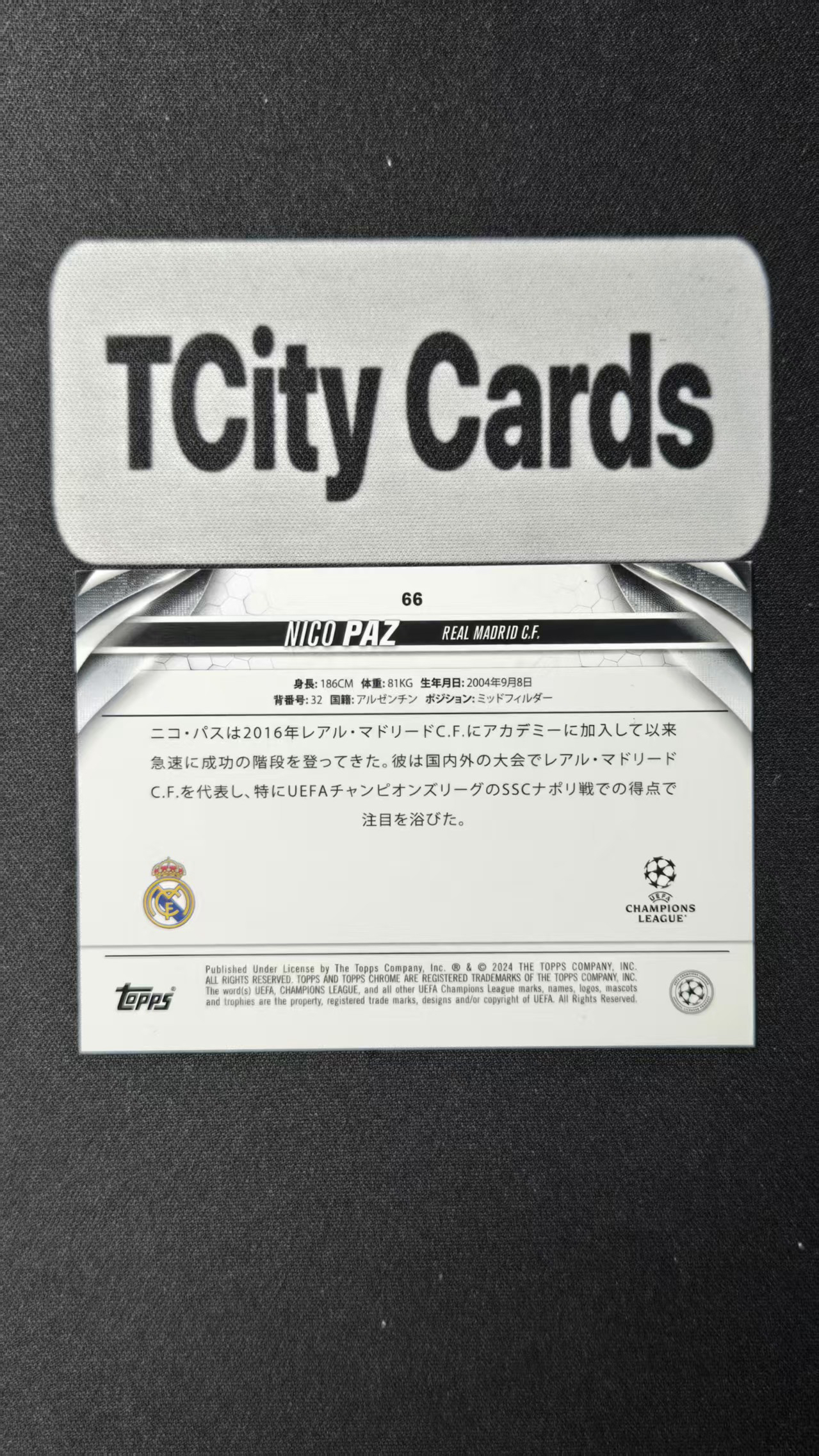 2024 Topps Chrome Nico Paz RC 欧冠 日版 新秀RC 皇家马德里 尼科 帕斯 帕兹 75编 蓝折 阿根廷 科莫 状态火热 豪门猎物 可乐