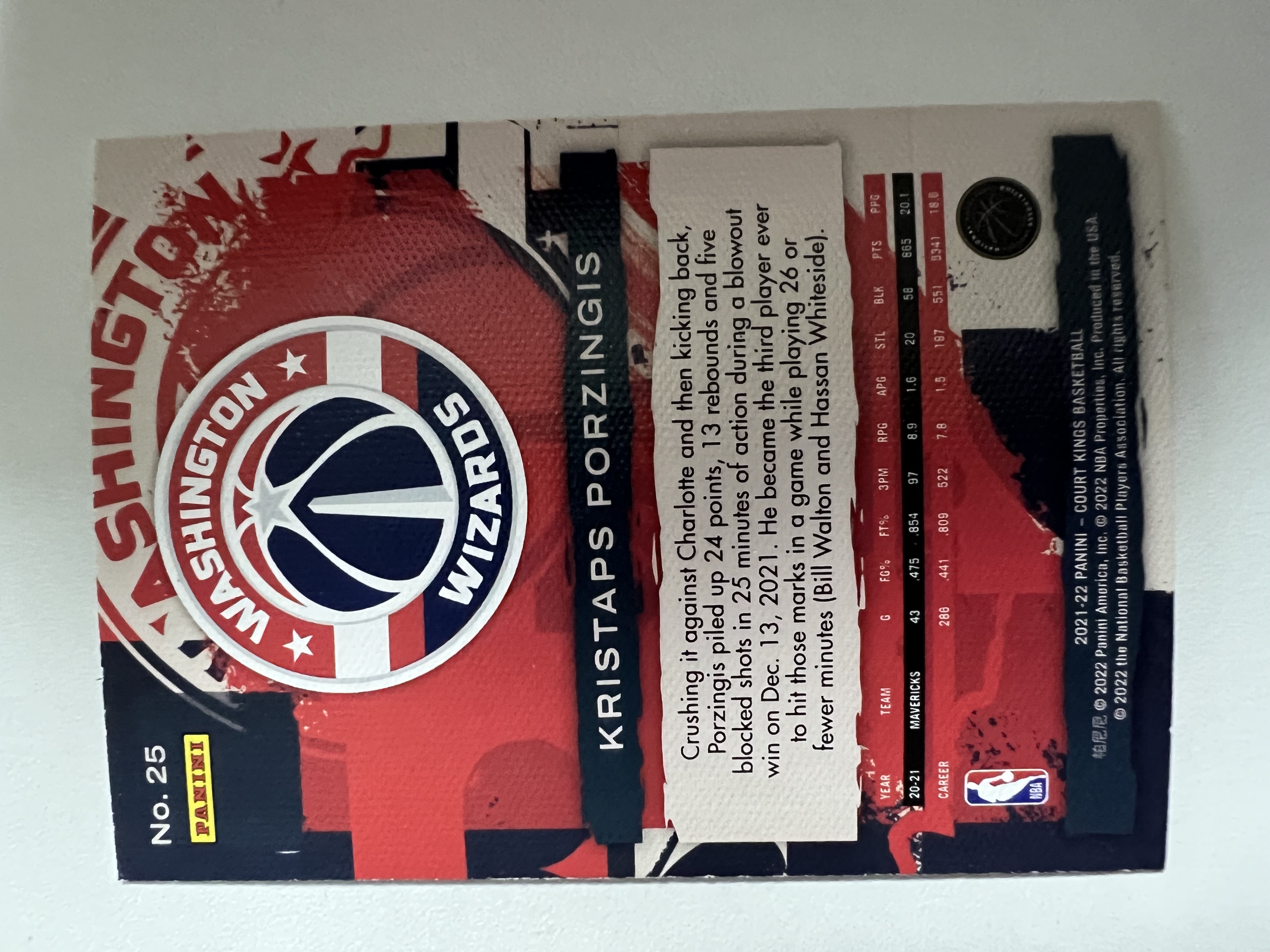 2021-22 Panini Court Kings Kristaps Porzingis #25 克里斯塔普斯·波尔津吉斯 奇才 油画 收藏凑套 卡品如图