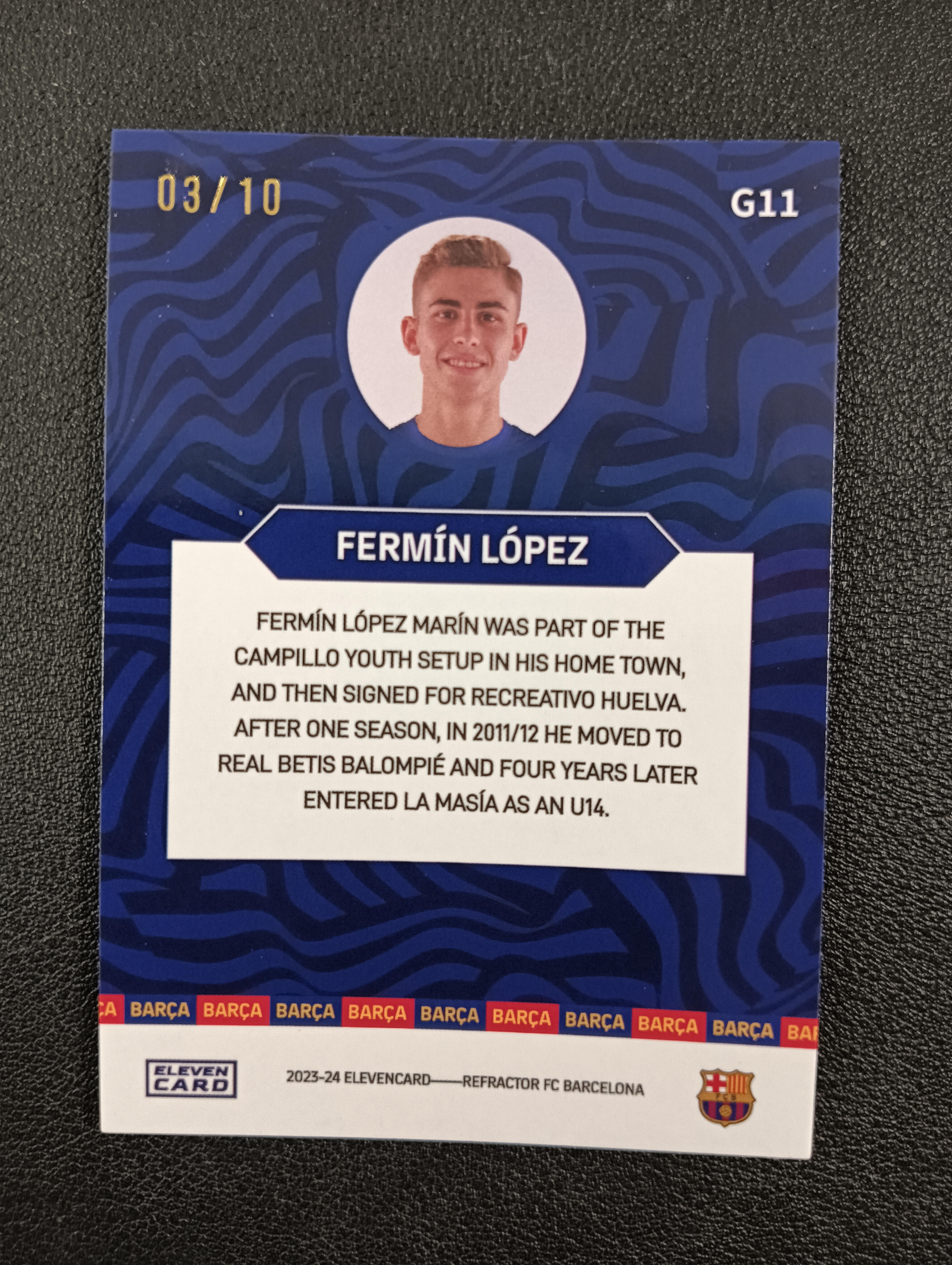 2023-24 ELEVENCARD FC BARCELONA FERMIN LOPEZ RC 【卡仓-XIU080】巴萨队盒 巴塞罗那 费尔明洛佩兹 金折 新秀BASE /10编 低编 NO.G11