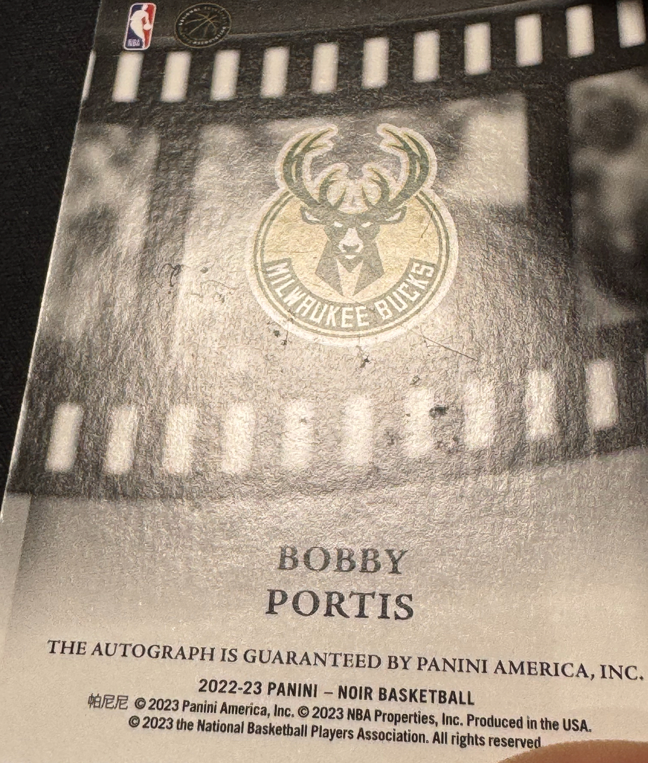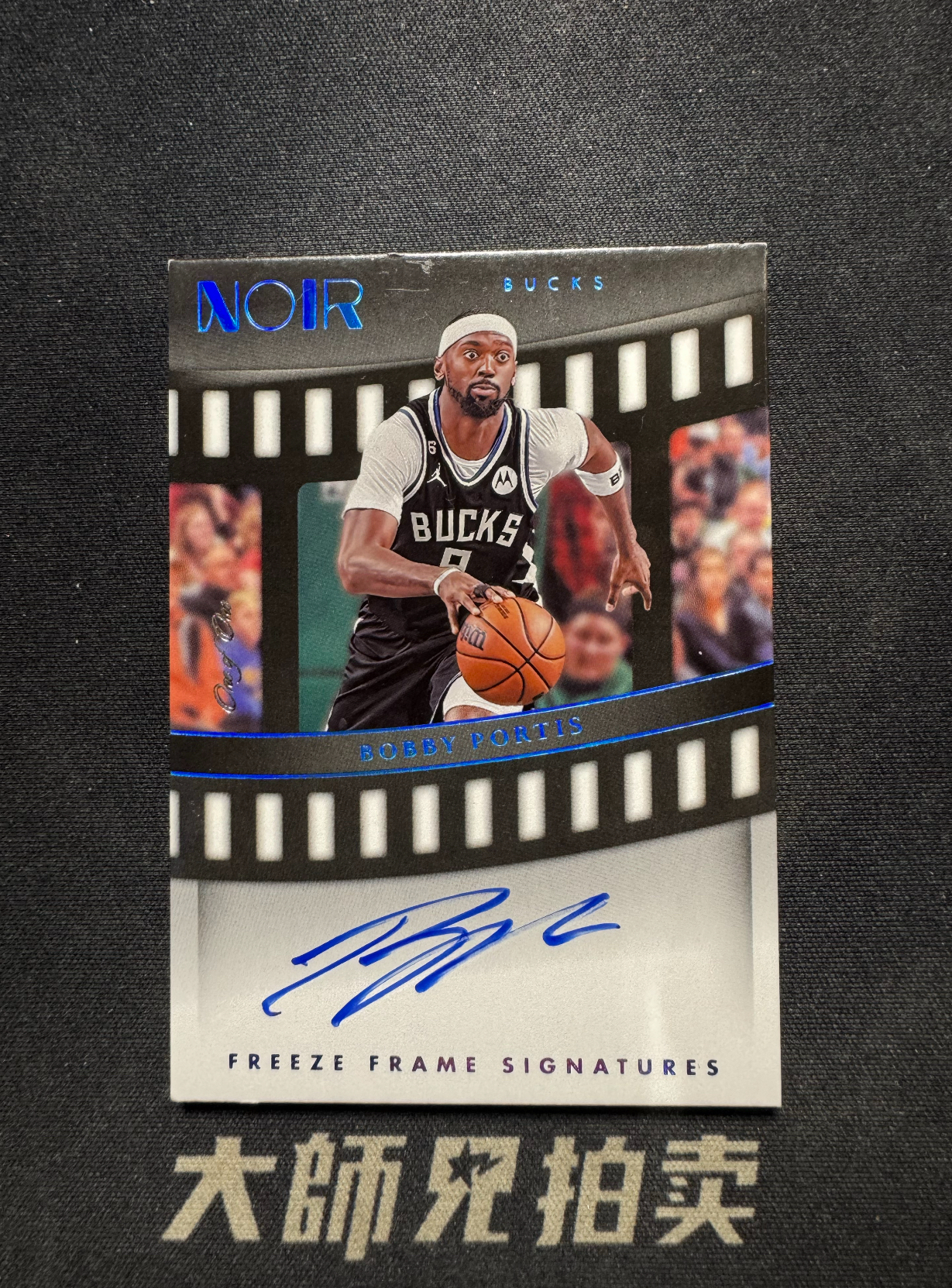 【大师兄拍卖】2022-23 Panini noir BOBBY PORTIS 雄鹿 波蒂斯 诺尔 1/1编 ofo 1of1 湖水蓝 签字 卡签 电影胶片签 字母哥队友 瑕疵看图 -春哥-