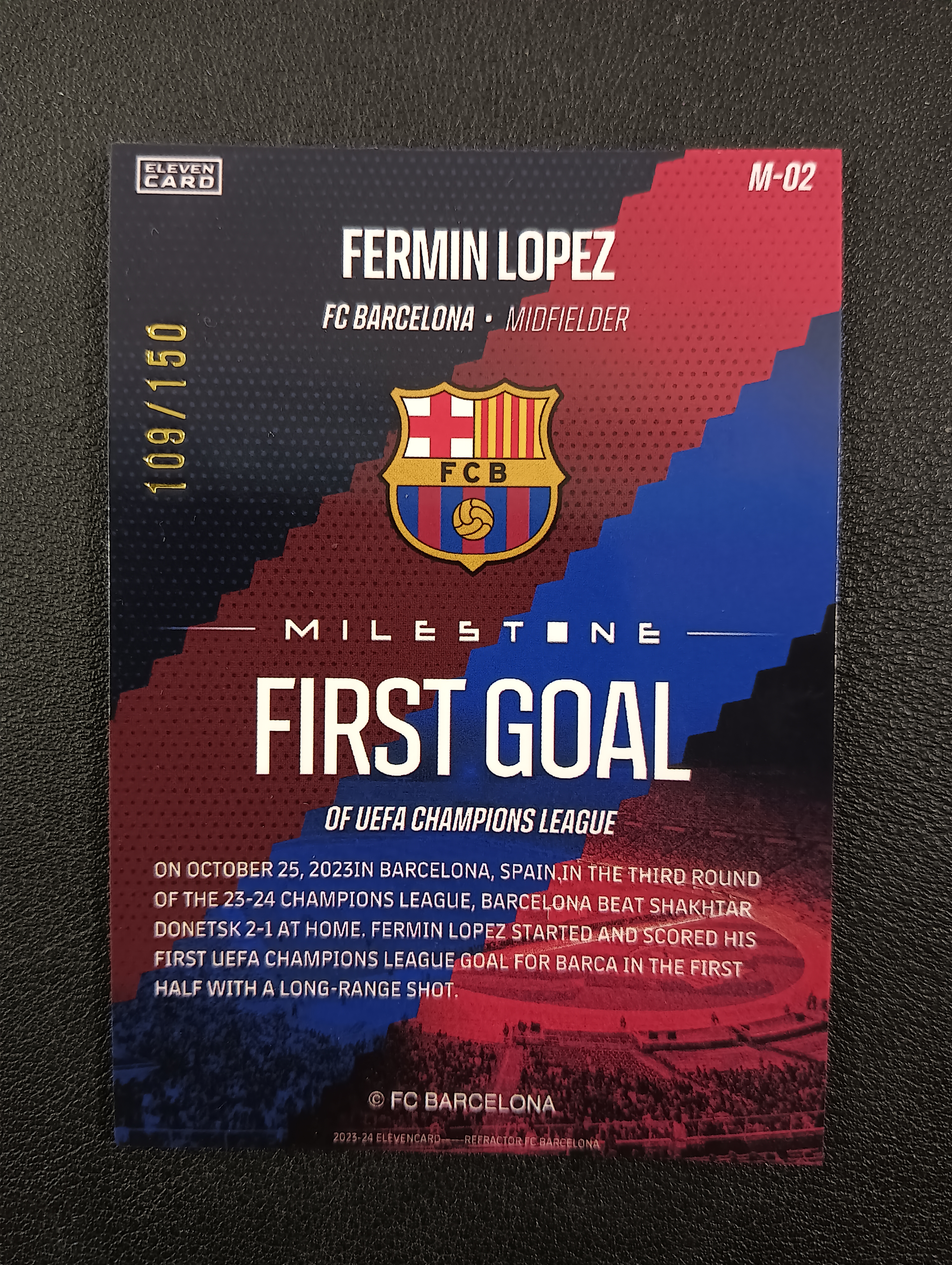 2023-24 ELEVENCARD FC BARCELONA FERMIN LOPEZ RC 【卡仓-XIU080】巴萨队盒 巴塞罗那 费尔明洛佩兹 折射 新秀里程碑特卡 /150编 NO.M-02