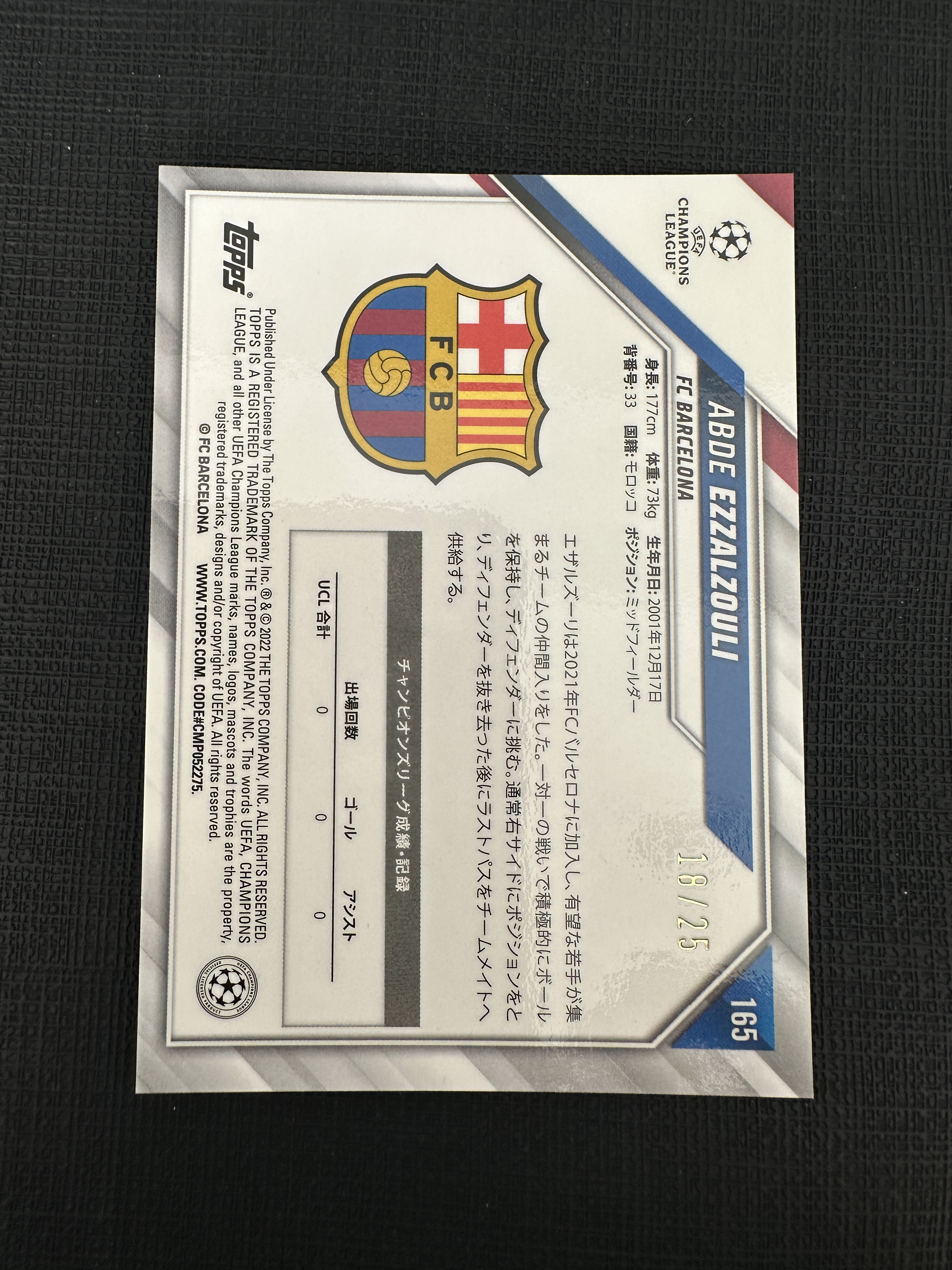2021-22 Topps UCC日版樱花盒 Abde Ezzalzouli 埃扎尔祖利 巴萨 欧冠 RC新秀 /25编 橙mojo折 【默认微瑕一日一快递 不累计 不发到付】卡kk