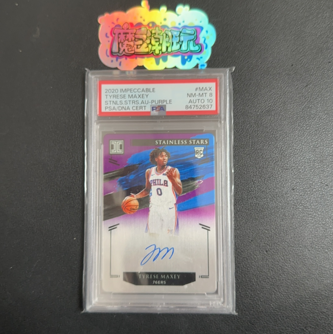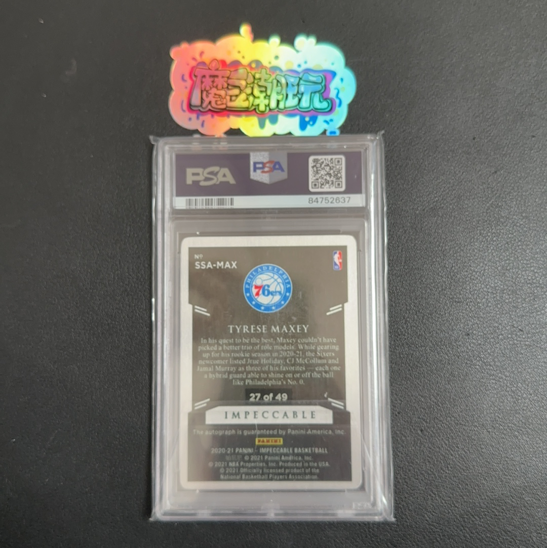 【魔豆拍卖】20-21 panini IMPECCABLE 小真金 TYRESE MAXEY 泰瑞斯 马克西 76人 新秀 RC 铁板 卡签 签字 49编 PSA 评级 8/10分【只发顺丰】 林主任
