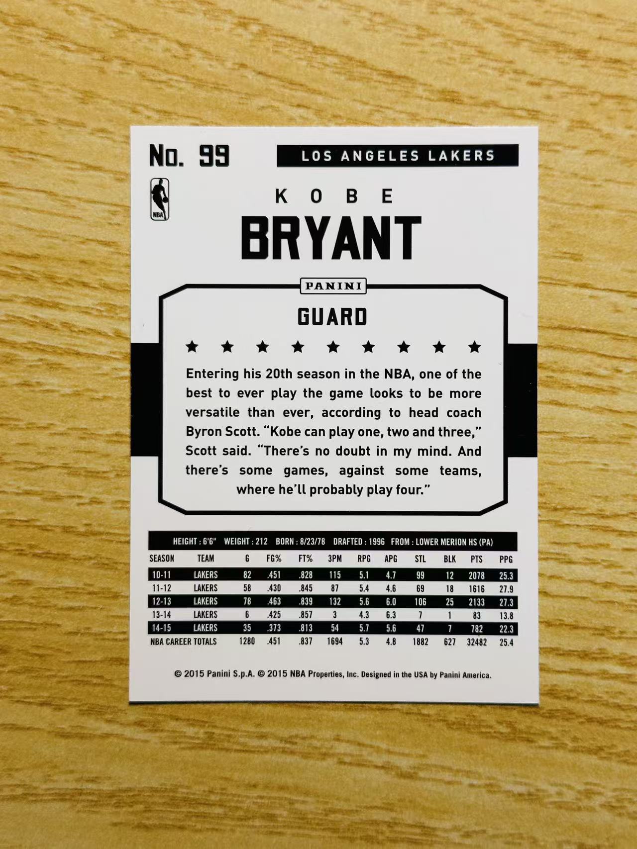 2015-16 Panini nba Kobe Bryant 嘿嘿代卖 黑曼巴 科比 布莱恩特 老大 勒布朗 詹姆斯 同框 湖人 MVP 小飞侠 老卡 老特 收藏必备