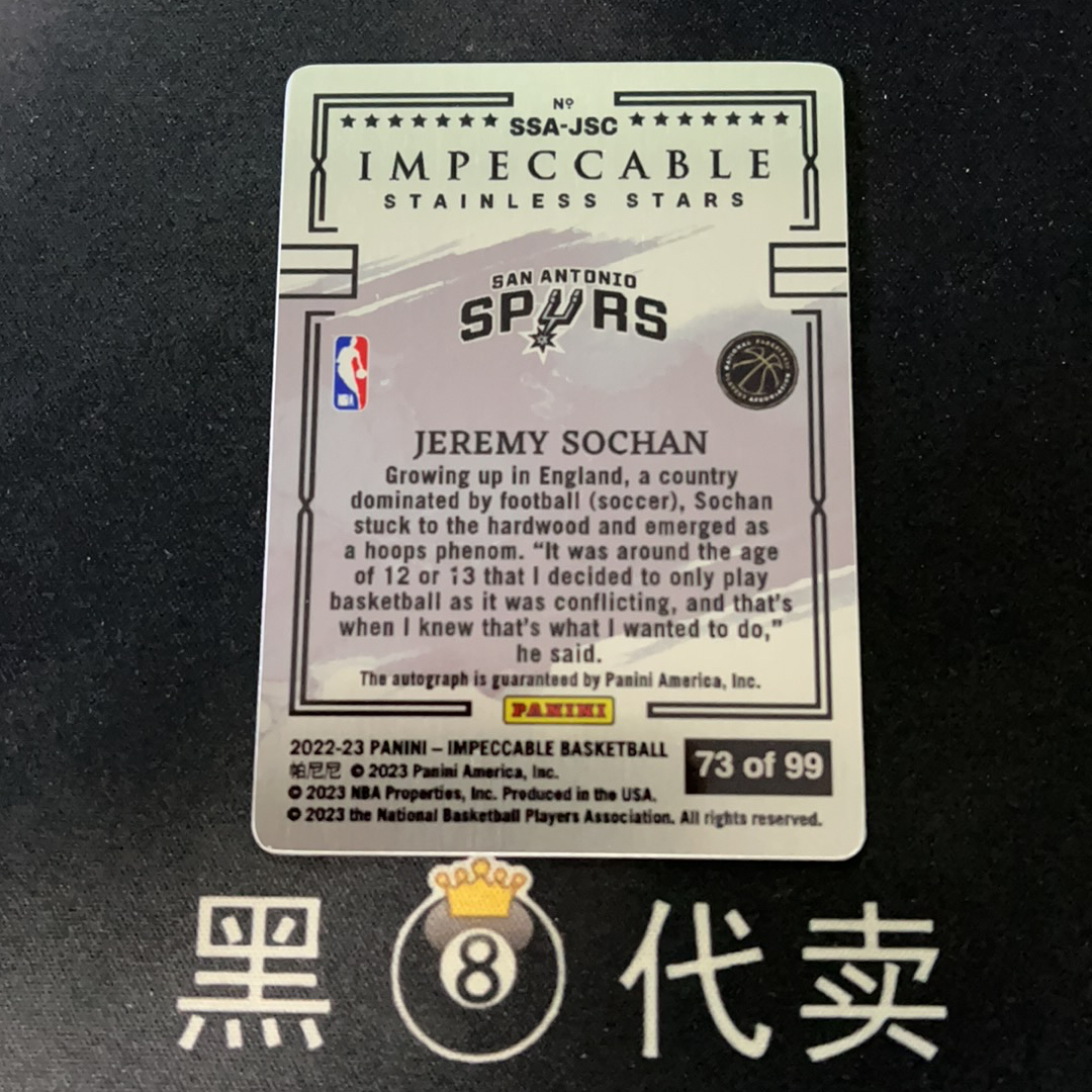 79【黑8代卖】2022-23 Panini Impeccable 小真金 Jeremy Sochan 杰里米 索汉 RC 新秀 签字 卡签 铁板签 73/99编 卡品如图【情执】