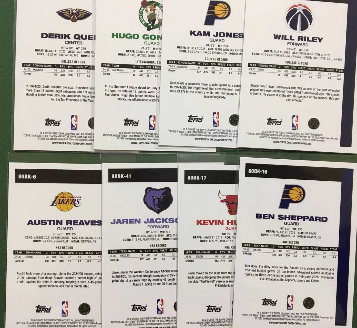 2025 Topps Flagship Derik Queen RC 新秀 鹈鹕 德里克 奎因 湖人 奥斯汀 里夫斯 灰熊 JJJ 步行者 凯尔特人 奇才等8张 45周年 复古base 不保卡品#一百