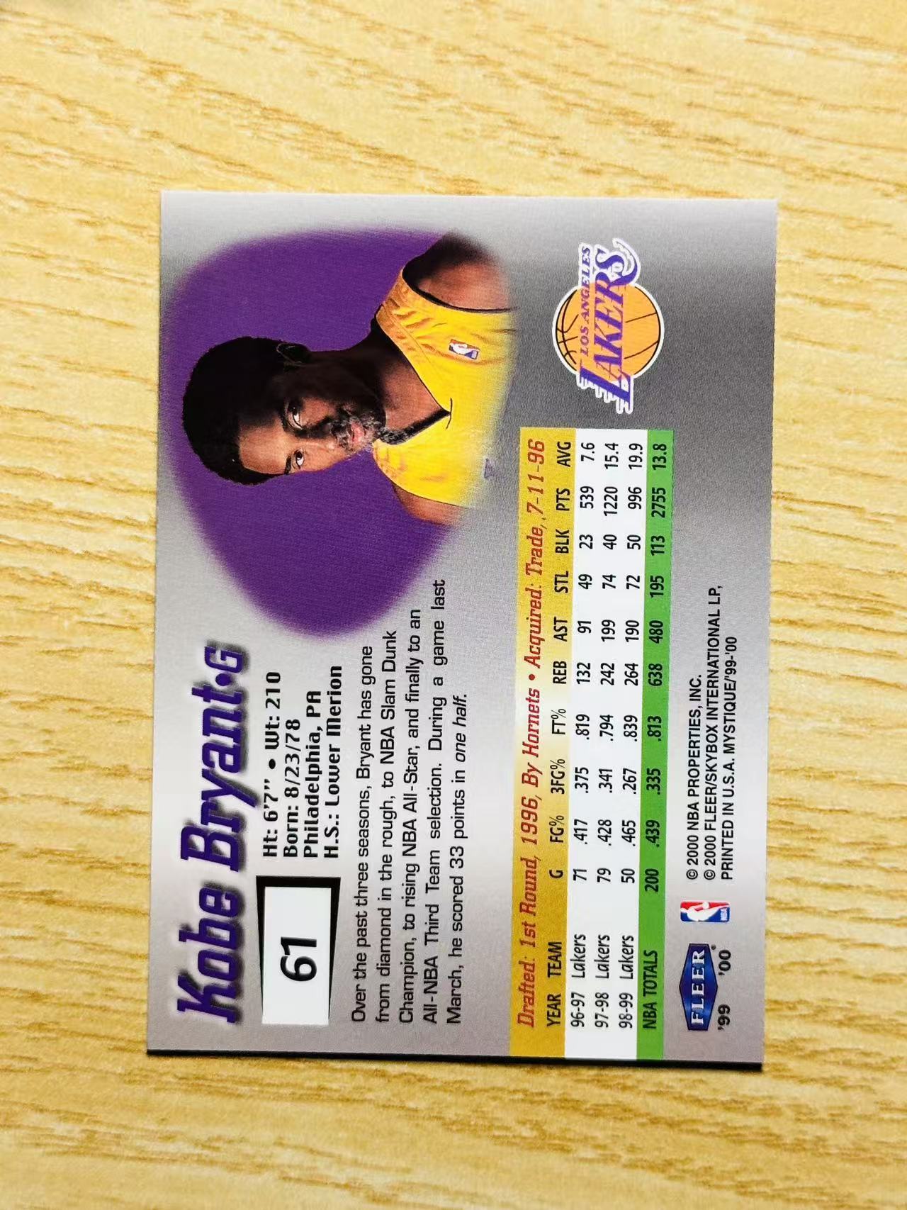 2000 Fleer Mystique Kobe Bryant 嘿嘿代卖 折射 银折 大比例 特卡 实卡很美 科比 布莱恩特 老大 湖人 MVP 小飞侠 老卡 老特 稀有好卡 收藏必备