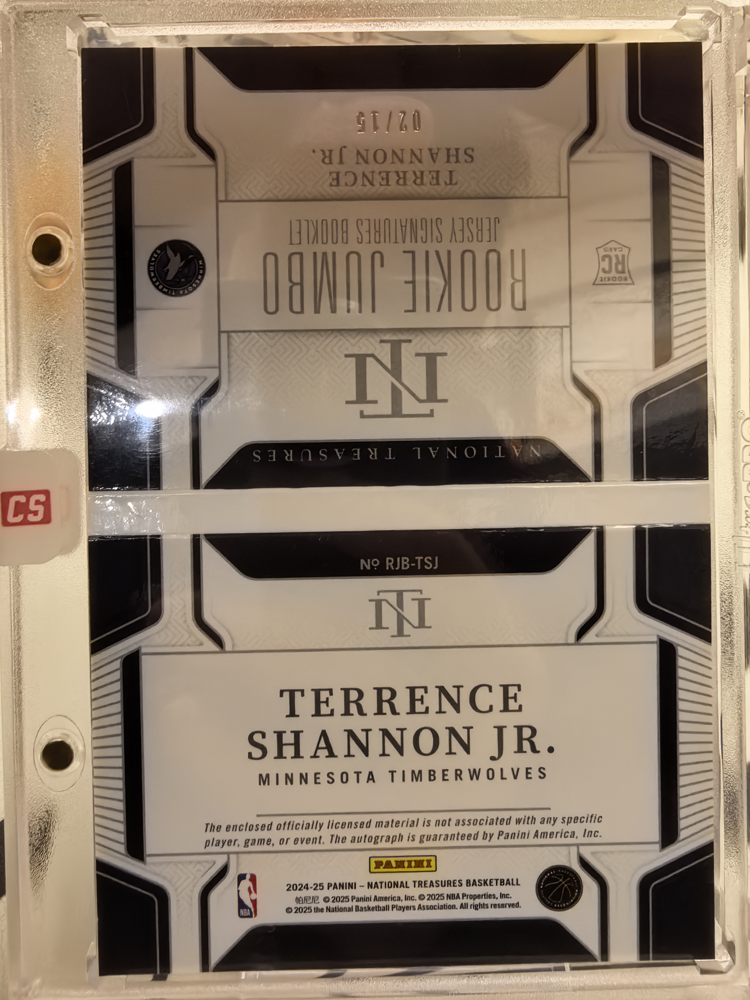 2024-25 Panini National Treasures Terrence Shannon Jr. RC 小香农 ROOKIE JUMBO PRIME TEAMLOGO 国宝小书 原封砖15编