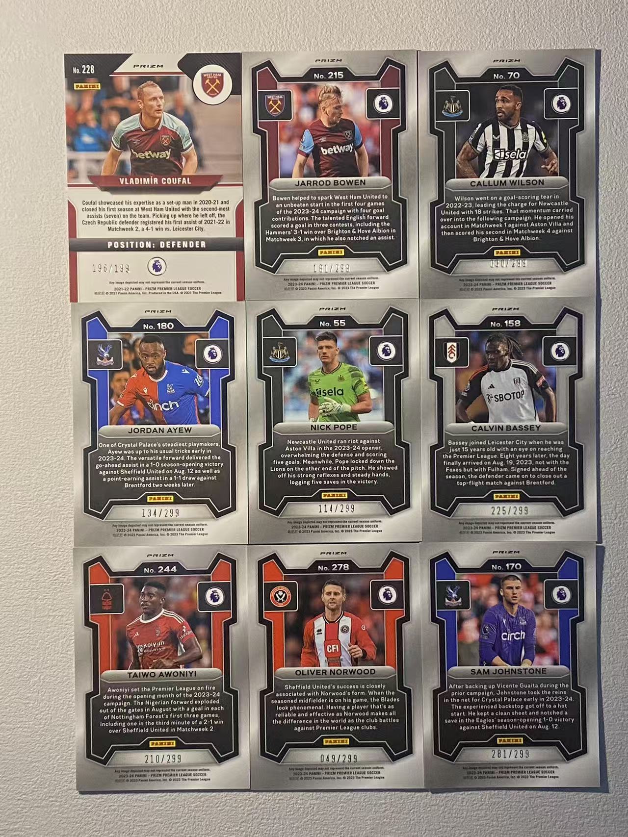 2024 Panini Prizm Jarrod Bowen 英超pz 鲍文 威尔逊 波普 曹法尔等 全部带编 折射 9张lot 收藏必备