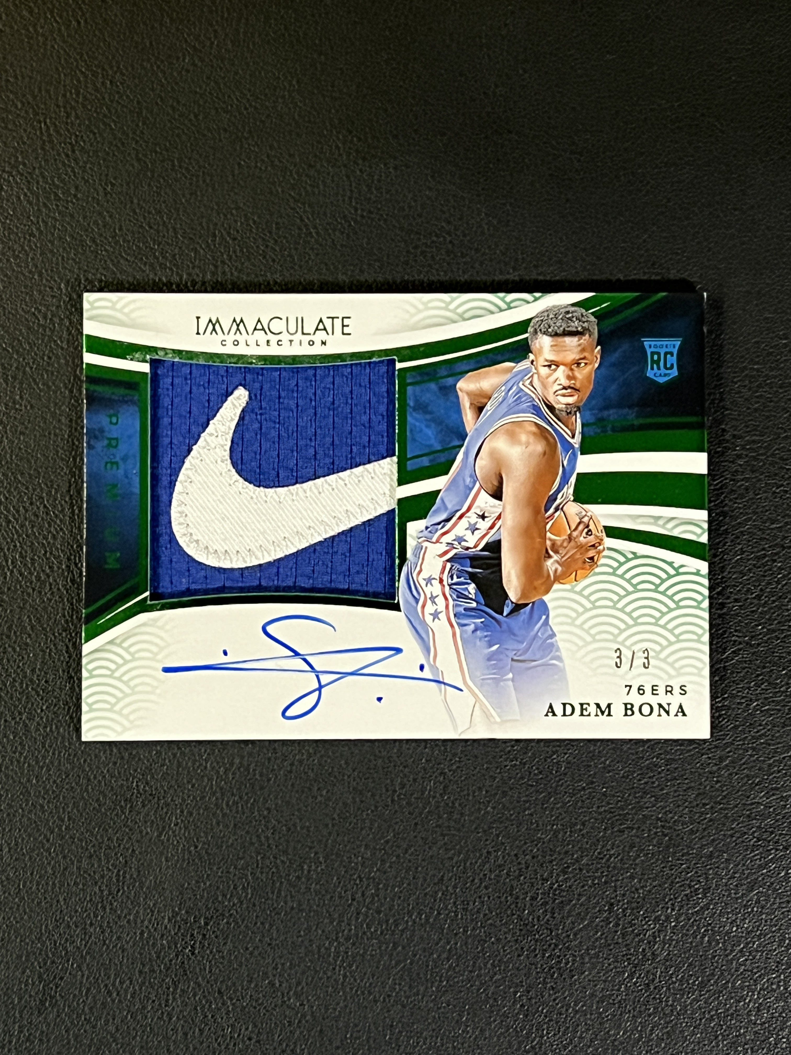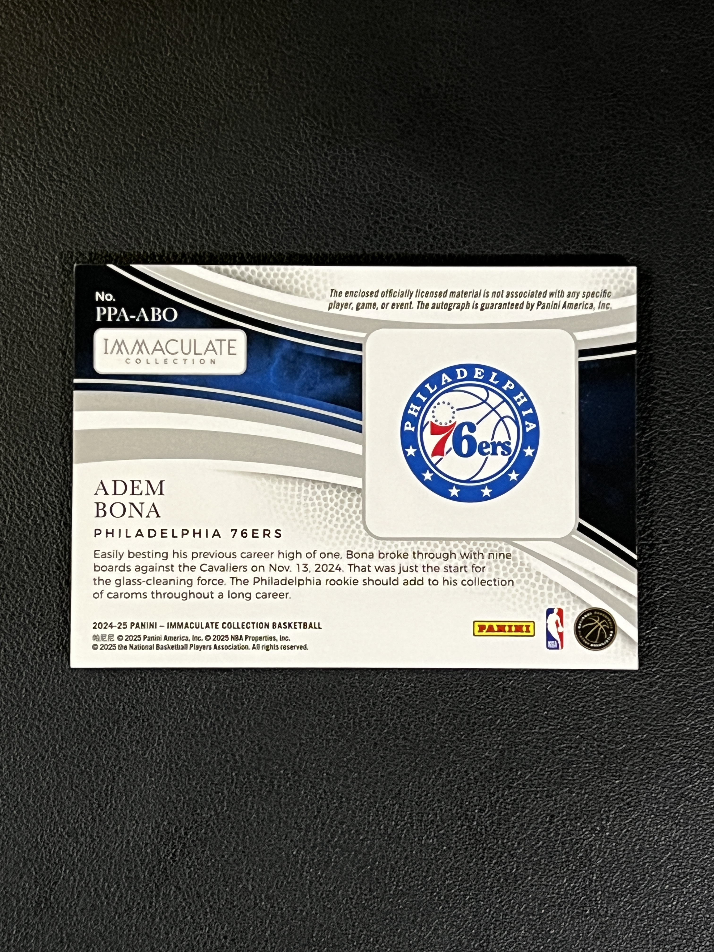 2024-25 Panini Immaculate Adem Bona RC 新秀 爱咪咪 76人 阿德姆 博纳 新秀 3/3编 尾编PPA RPA 球衣 签字 卡签 钩子 patch(卡品墨迹如图)