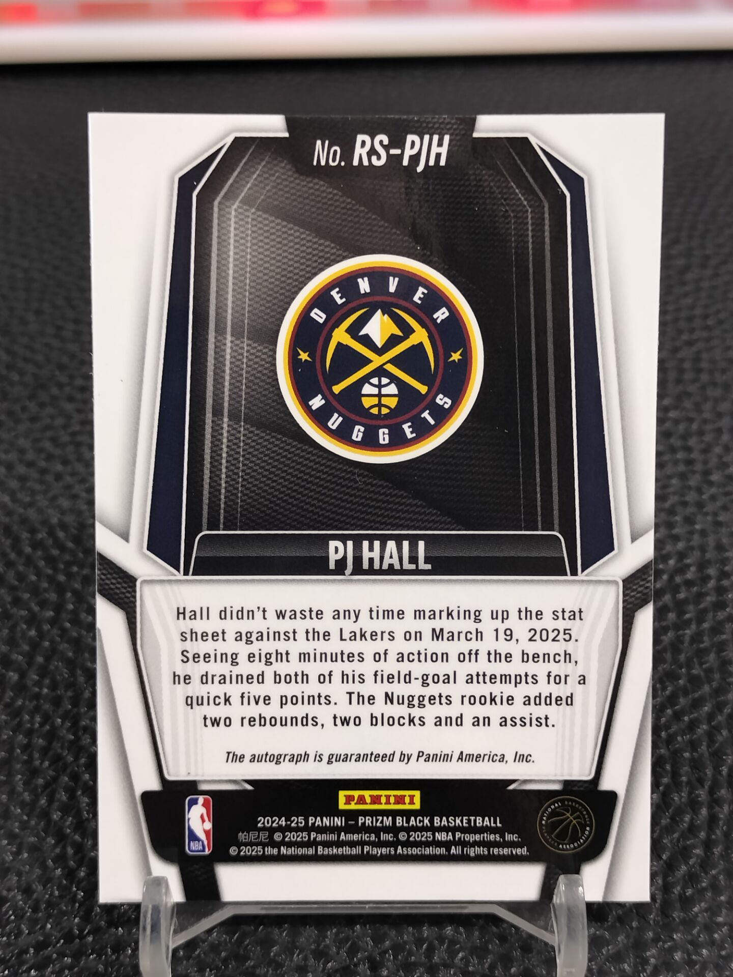 【浩行拍卖 截标预付82%】2024-25 panini prizm black pj hall 掘金 PJ 霍尔 RC 新秀 签字 专收必备 瑕疵看图「挑选」1109h01飛