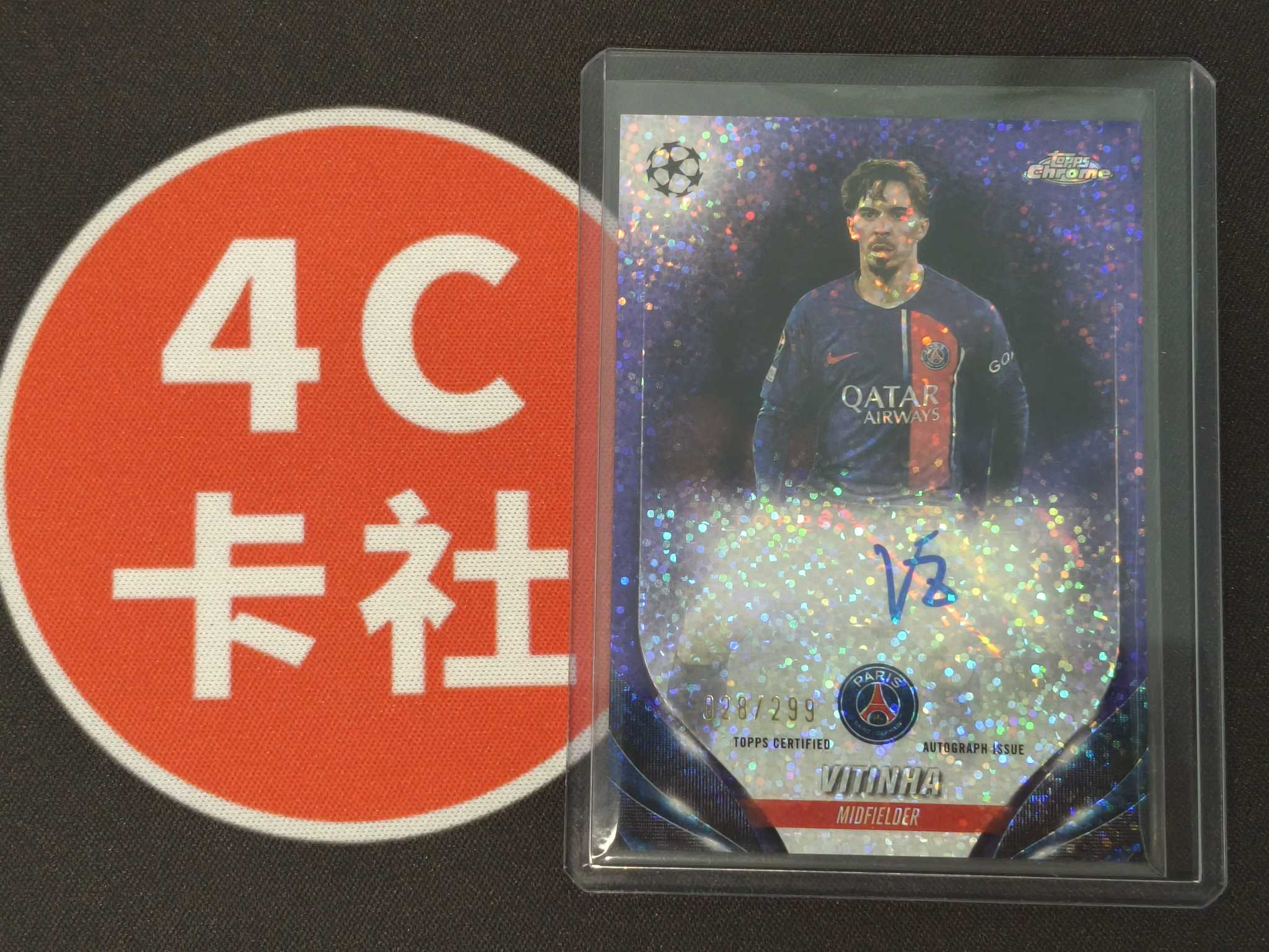 2023-24 Topps Chrome VITINHA 【4C卡社】欧冠TC 维蒂尼亚 巴黎圣日耳曼 葡萄牙 028/299编 紫碎点折 同辈签字 卡品如图