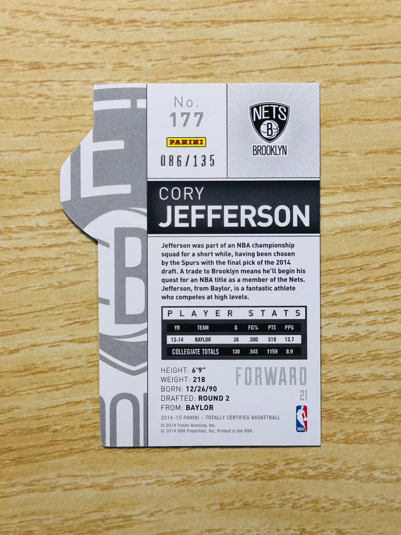 2014-15 Panini Totally Certified Cory Jefferson 嘿嘿代卖 卫生巾 科里 杰弗森 红折 135编 异形 篮网 稀有好卡 收藏必备