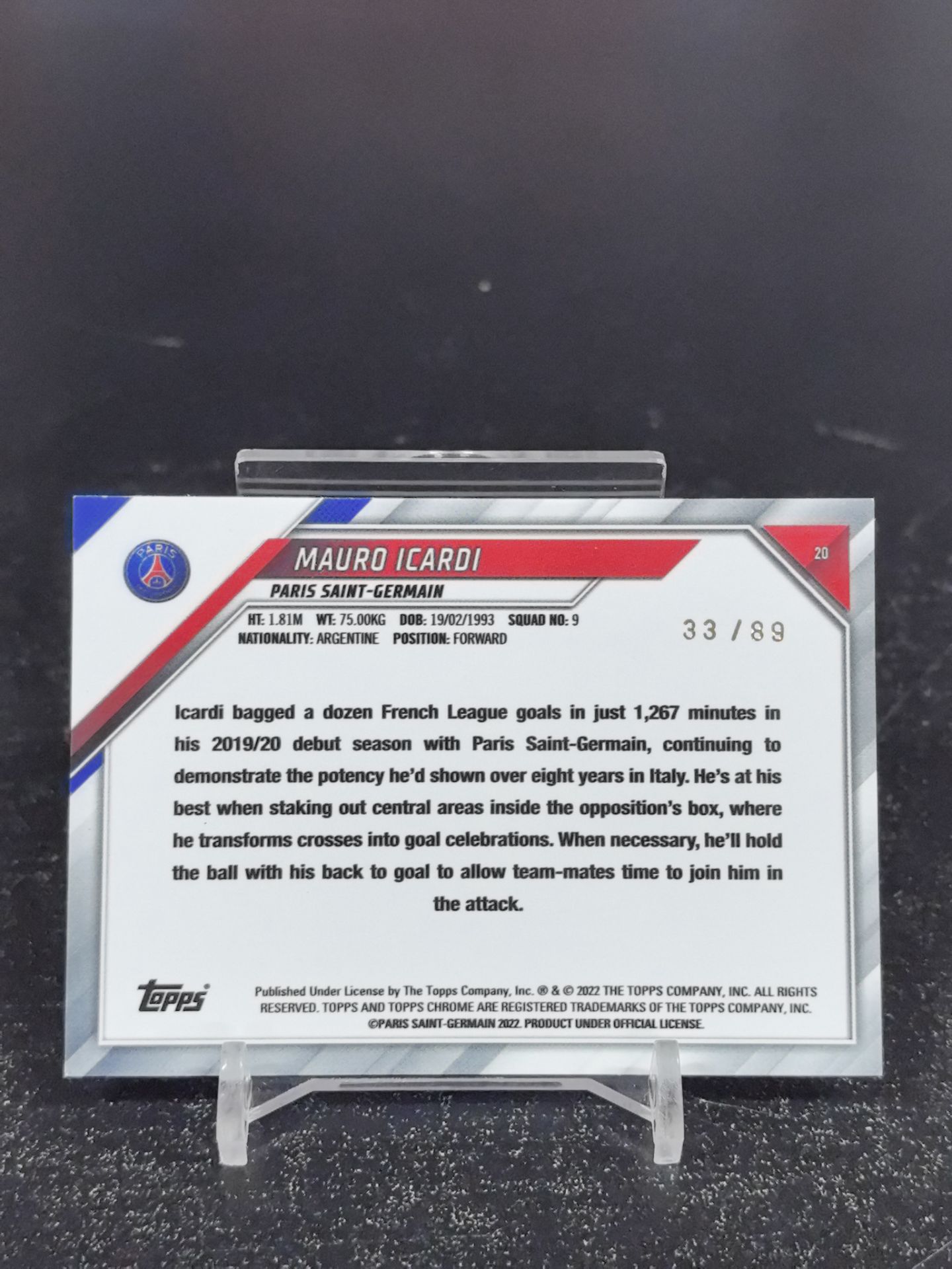 【浩行拍卖 截标预付82%】2022 topps Chrome mauro icardi 欧冠 大巴黎 伊卡尔迪 33/89编 专收必备 瑕疵看图「附中」1109N02紋