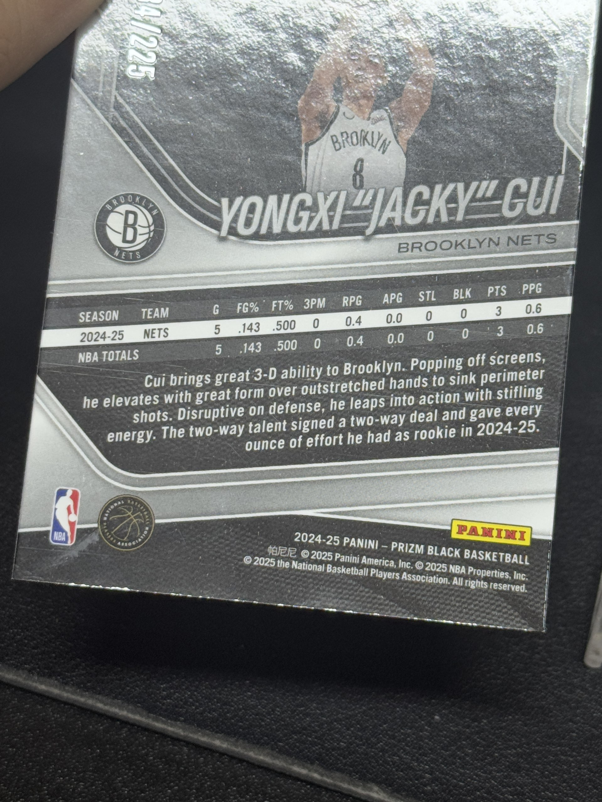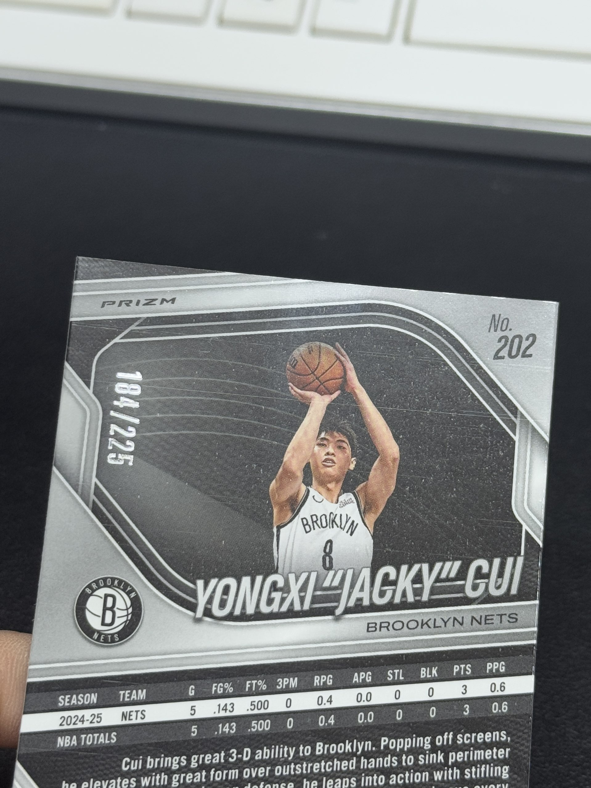 【浩行拍卖 截标预付82%】2024-25 panini prizm yongxi jacky cui 篮网 崔永熙 RC 新秀 球皮折 折射 184/225编 专收必备 瑕疵看图「川456」1109B03裊