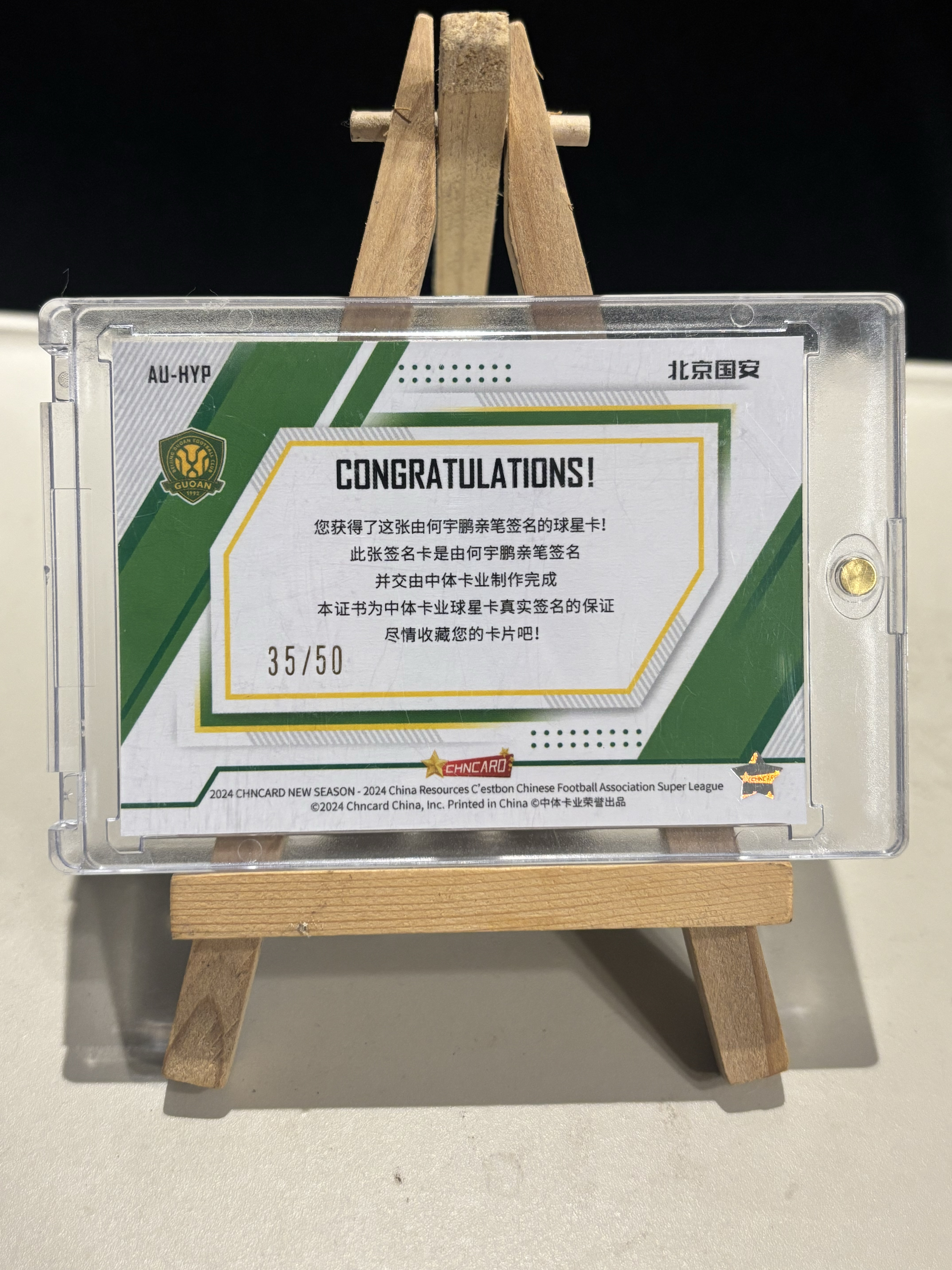 【树树拍卖 杨哥北京国安专场】2024 中体卡业 CSL NEW SEASON(新赛季) 何宇鹏 中超新赛季 签字 北京国安 后场万金油 35/50编 铜折 折射【送卡砖!】