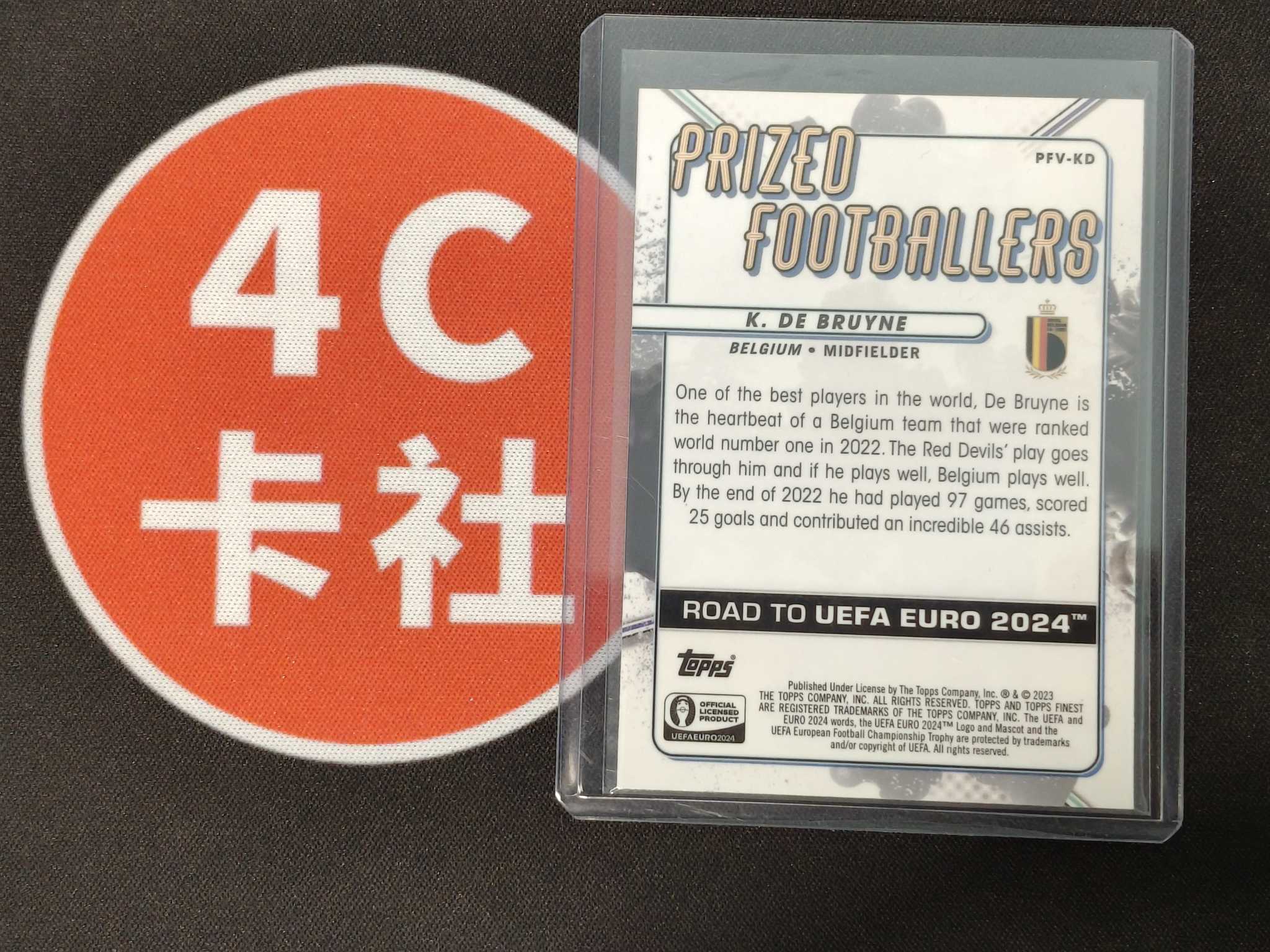 2023 Topps Finest Kevin De Bruyne 【4C卡社】欧洲杯Finest 德布劳内 比利时 Prizeo Footballers 最佳球员特卡 银折 折射 卡品如图