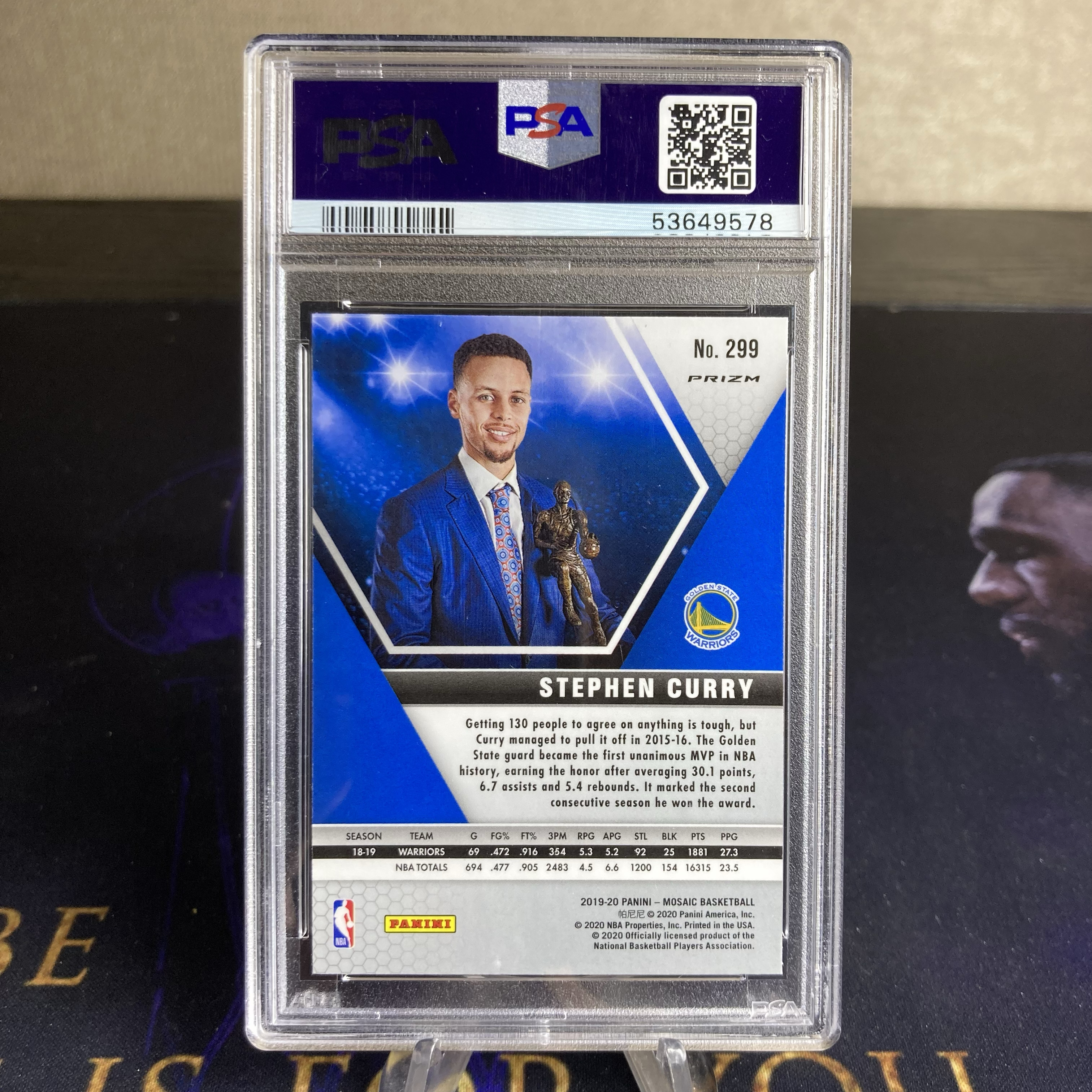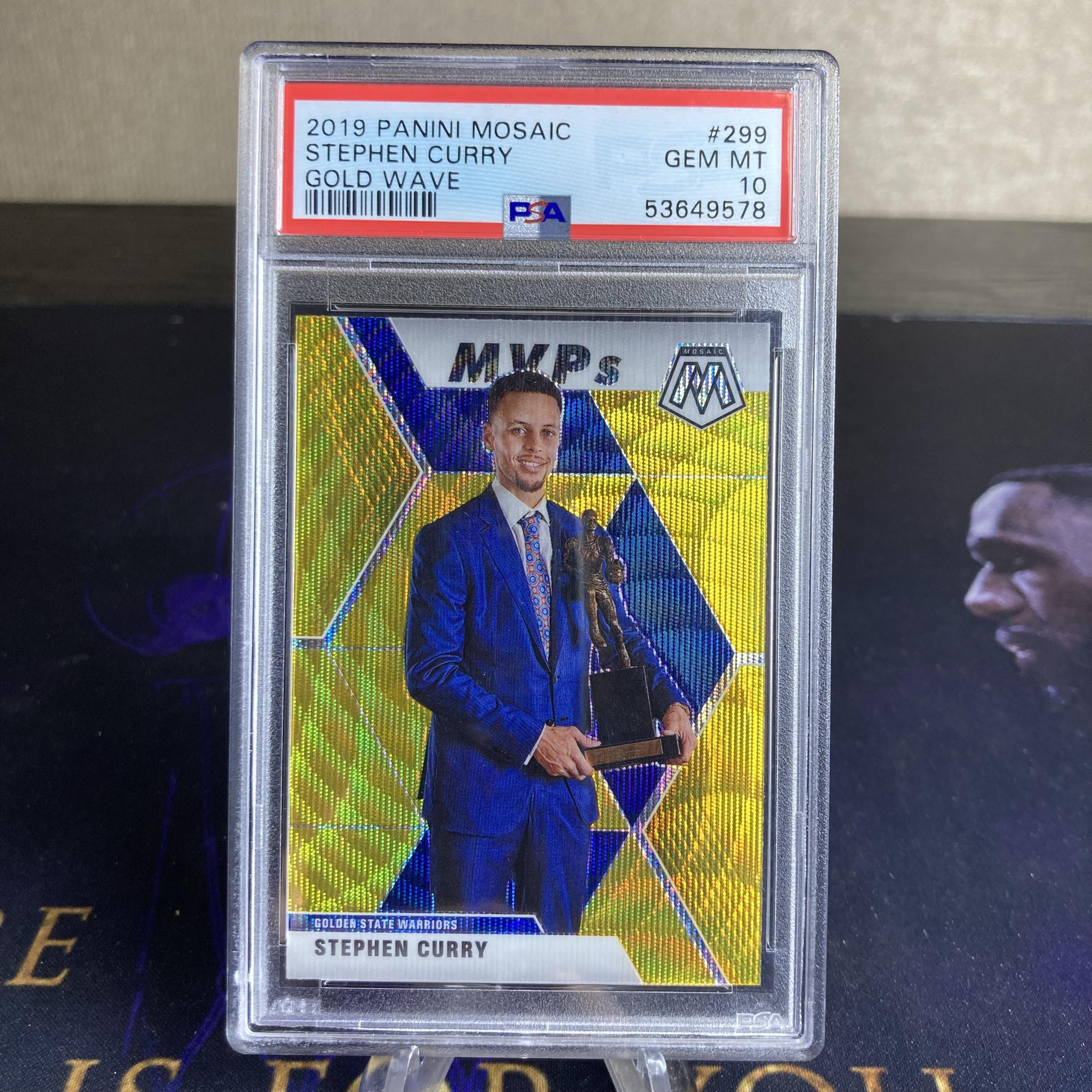 2019-20 Panini Mosaic Stephen Curry 【星卡优转】马赛克系列 勇士 斯蒂芬 库里 捧杯特卡 金波纹折 大比例 psa10分 专收必备 cgj