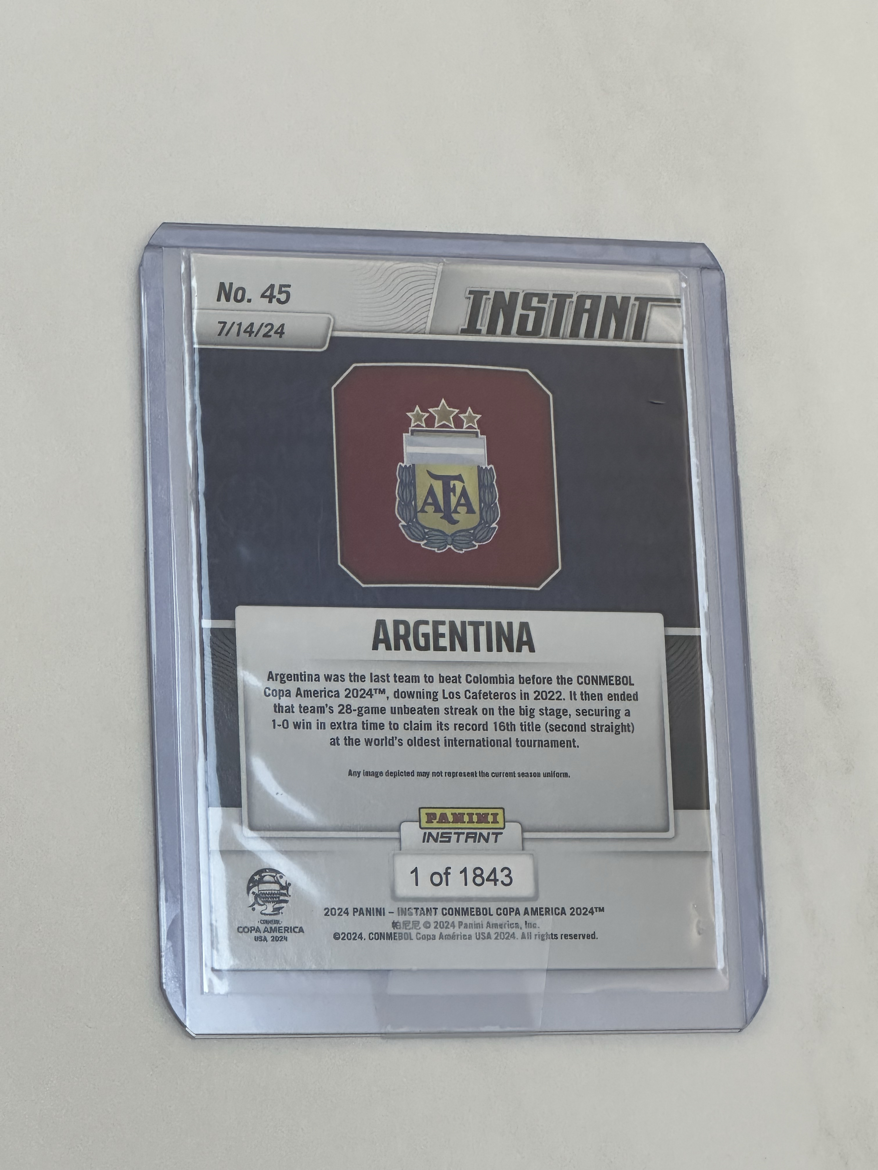 2024 panini instant美洲杯时刻 阿根廷 美洲杯冠军 梅西 迪玛利亚 阿尔瓦雷斯 大马丁 劳塔罗 德保罗 恩佐 麦卡利斯特 1of1843 限量 原封夹