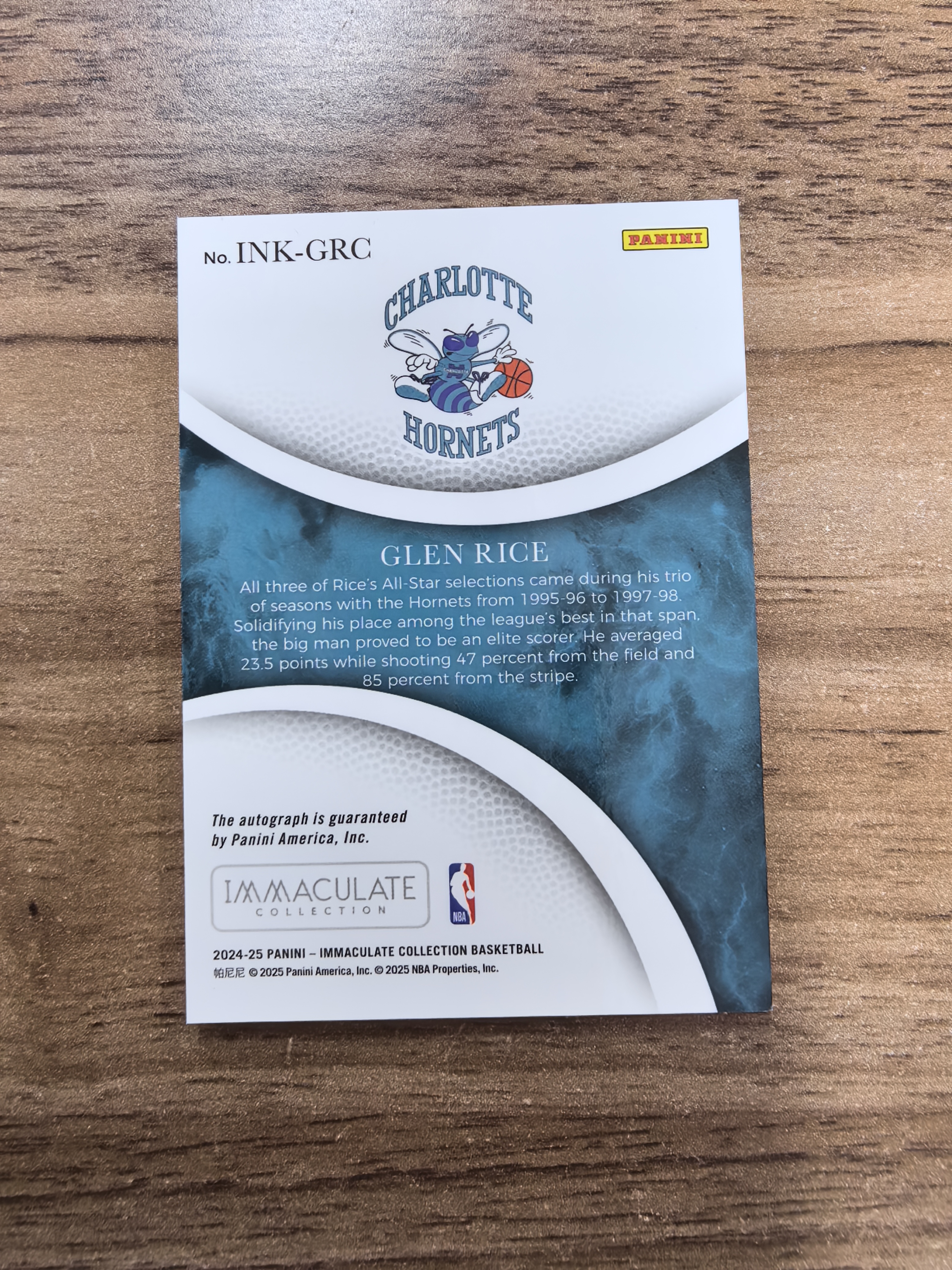 2024-25 Panini Immaculate Collection Glen Rice 黄蜂 格伦莱斯 99编 签字 卡签 INK签 微瑕 实卡精美 卡品如图 收藏必入 流浪