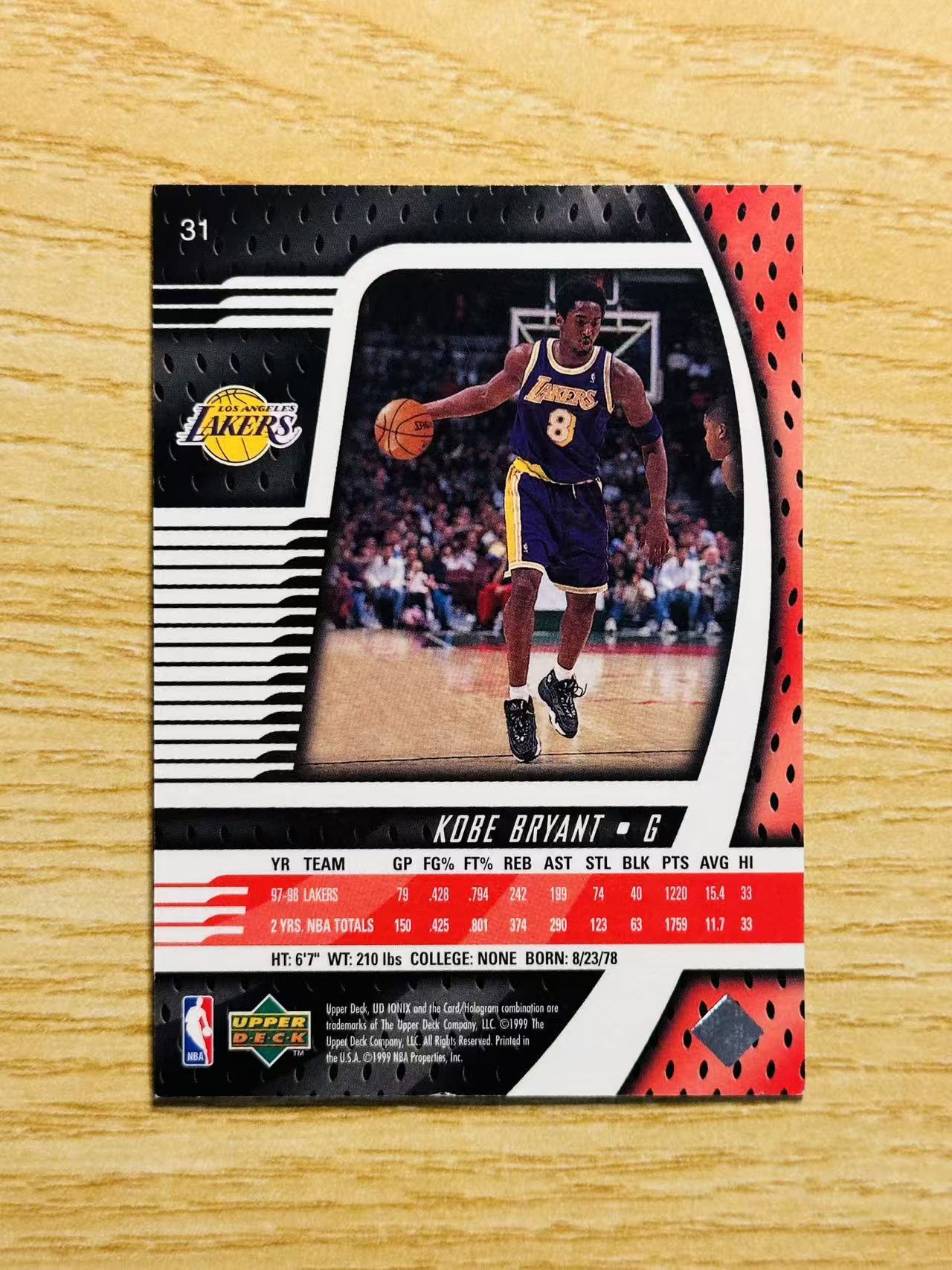 1999 Upper Deck nba Kobe Bryant 嘿嘿代卖 科比 布莱恩特 超帅选图 背身单打 小框科比 湖人 老大 稀有好卡 老特 收藏必备