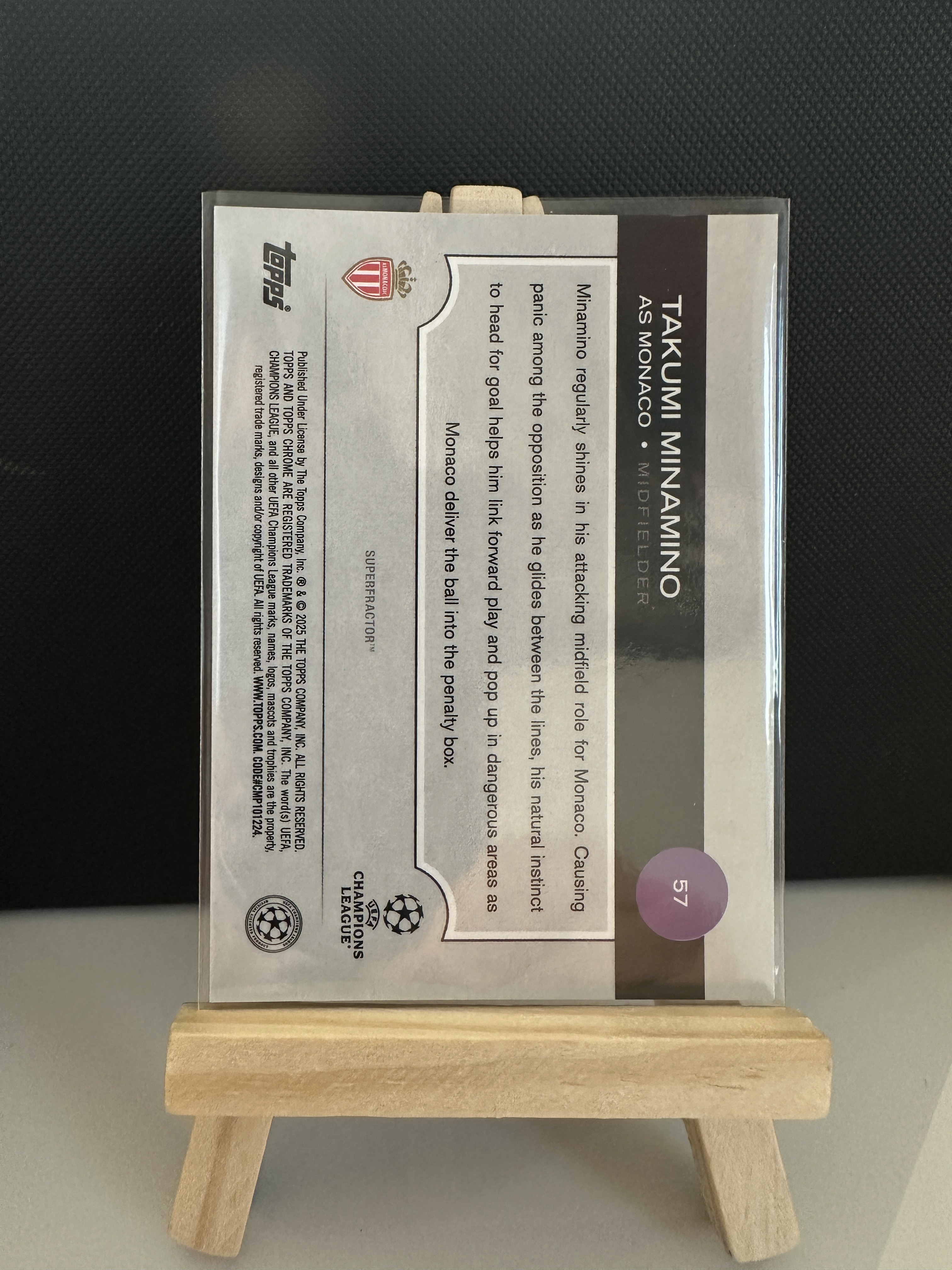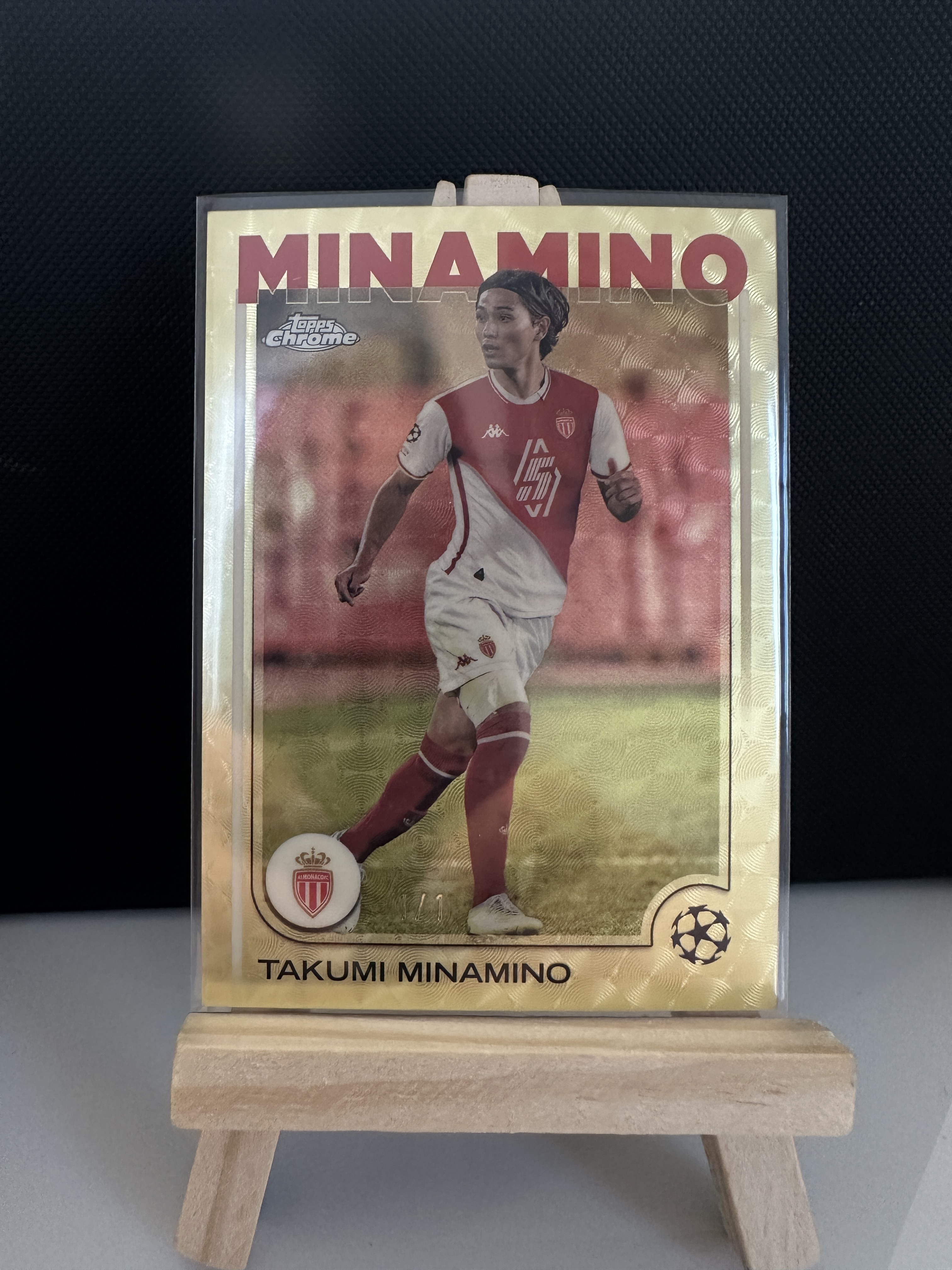 2024-25 Topps Chrome Takumi Minamino 南野拓实 摩纳哥 欧冠 TC 1/1 编 1of1 折射 带编 【默认微瑕一日一快递 不累计 不发到付】正义1